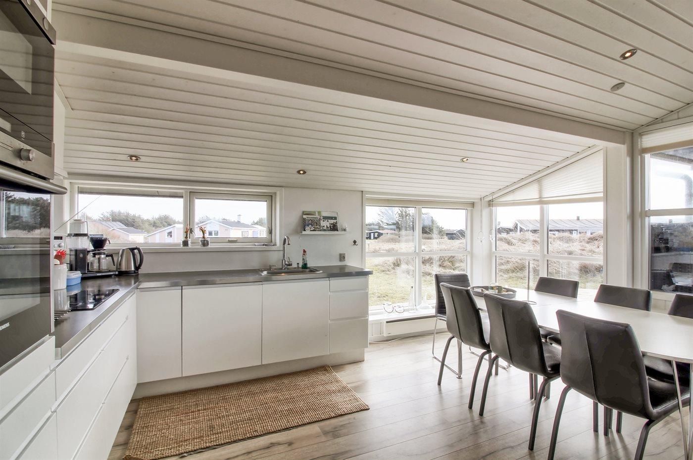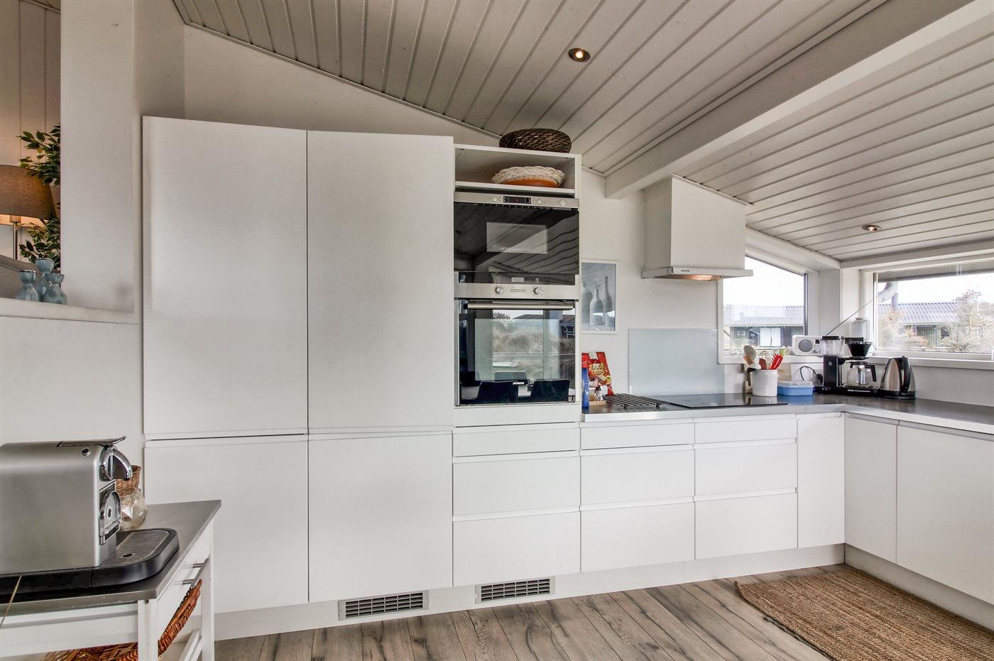 Køkkenet er udstyret med 1 køleskab. Der er 4 keramiske kogeplader, varmluftovn, mikrobølgeovn samt opvaskemaskine.