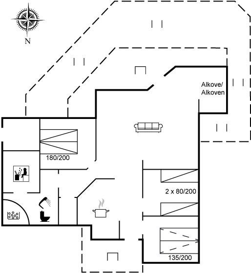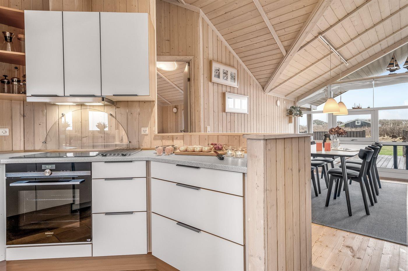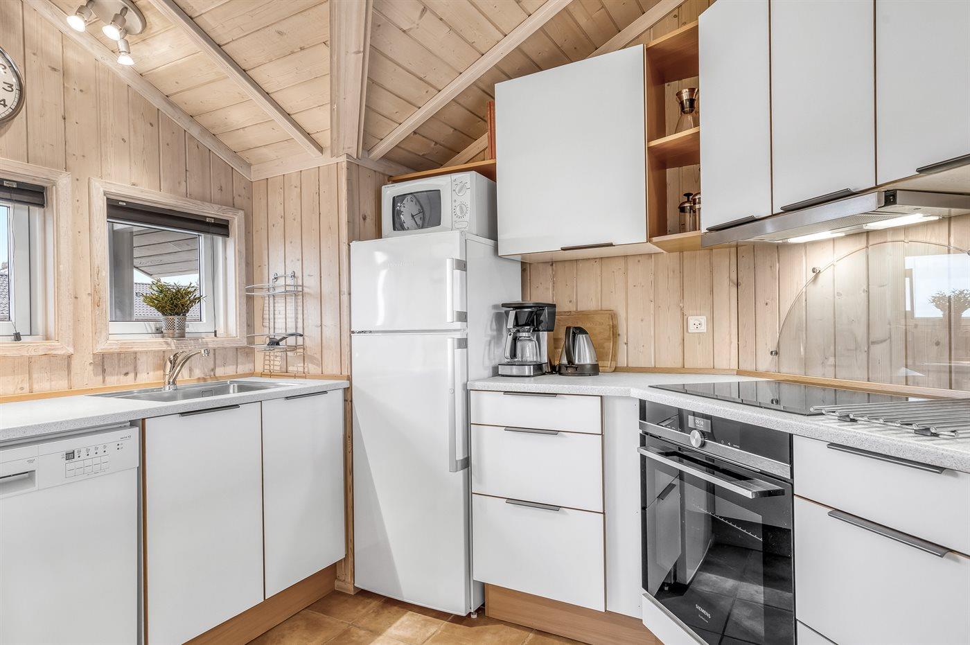 Køkkenet er udstyret med 1 køleskab. Der er 4 induktionskogeplader, varmluftovn, mikrobølgeovn samt opvaskemaskine.