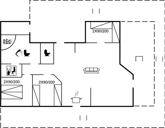 Der er i alt 3 soveværelser. Sovepladserne fordeler sig på: 2 sovepladser i dobbeltseng. 4 sovepladser i enkeltsenge. Huset har desuden en hems med 2 madrasser.