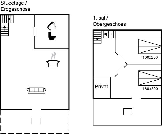 Der er i alt 2 soveværelser. Sovepladserne fordeler sig på: 4 sovepladser i dobbeltsenge. 2 sovepladser på madrasser. 2 af disse sovepladser befinder sig på husets hems. Derudover er der 1 stk. barneseng.