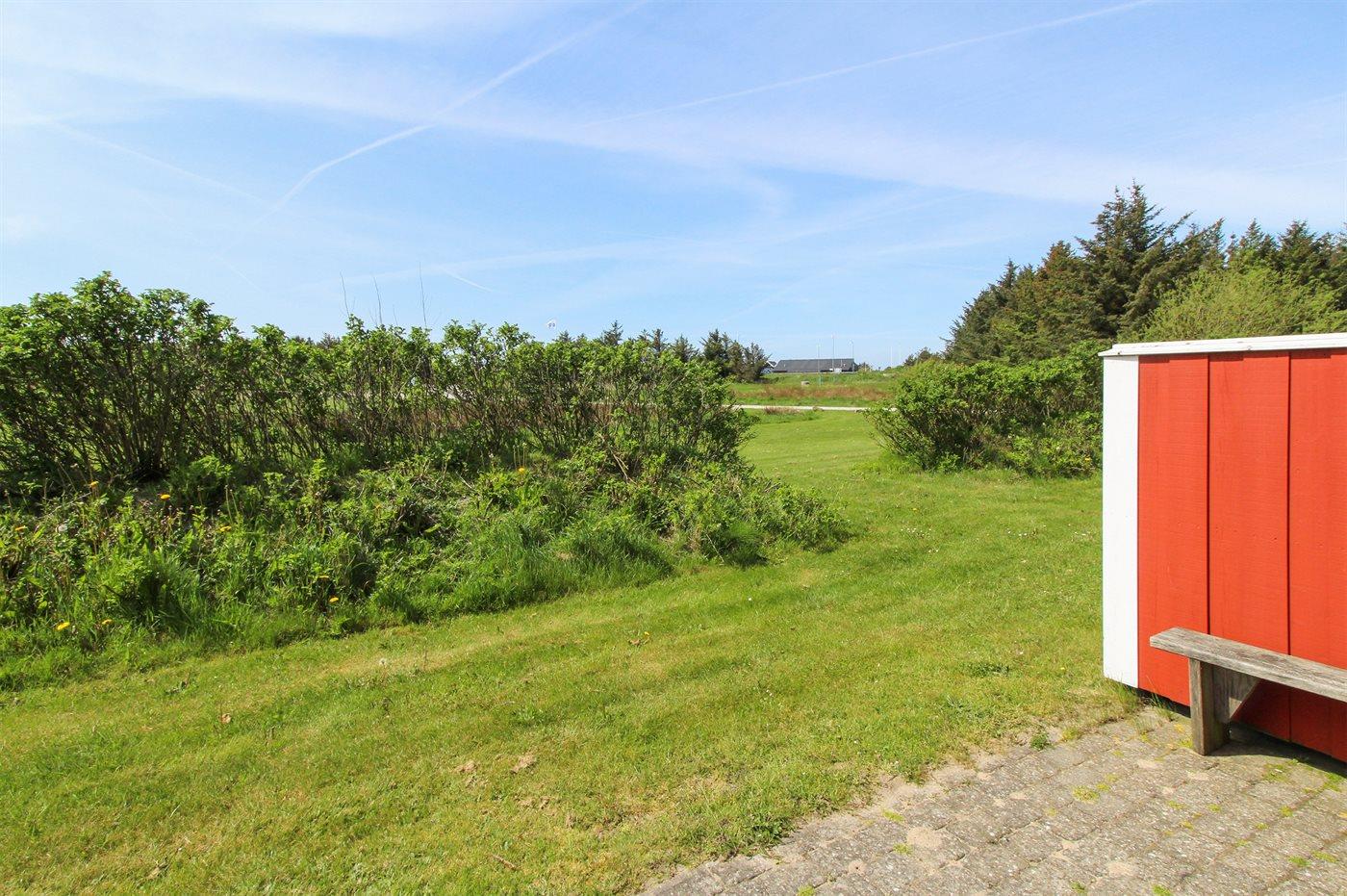 Ferieboligen er beliggende på en 50 m² stor naturgrund. Der er 900 m til havet. Nærmeste forretning er beliggende i en afstand af 700 m. Der er en golfbane i en afstand af 100 m. Til ferieboligen hører 19 m² terrasseareal. Desuden er der 8 m² overdækket terrasse. Der er redskabsrum. Der ligger en legeplads i en afstand af 10 m. Gasgrill til rådighed. Parkering ved ferieboligen.