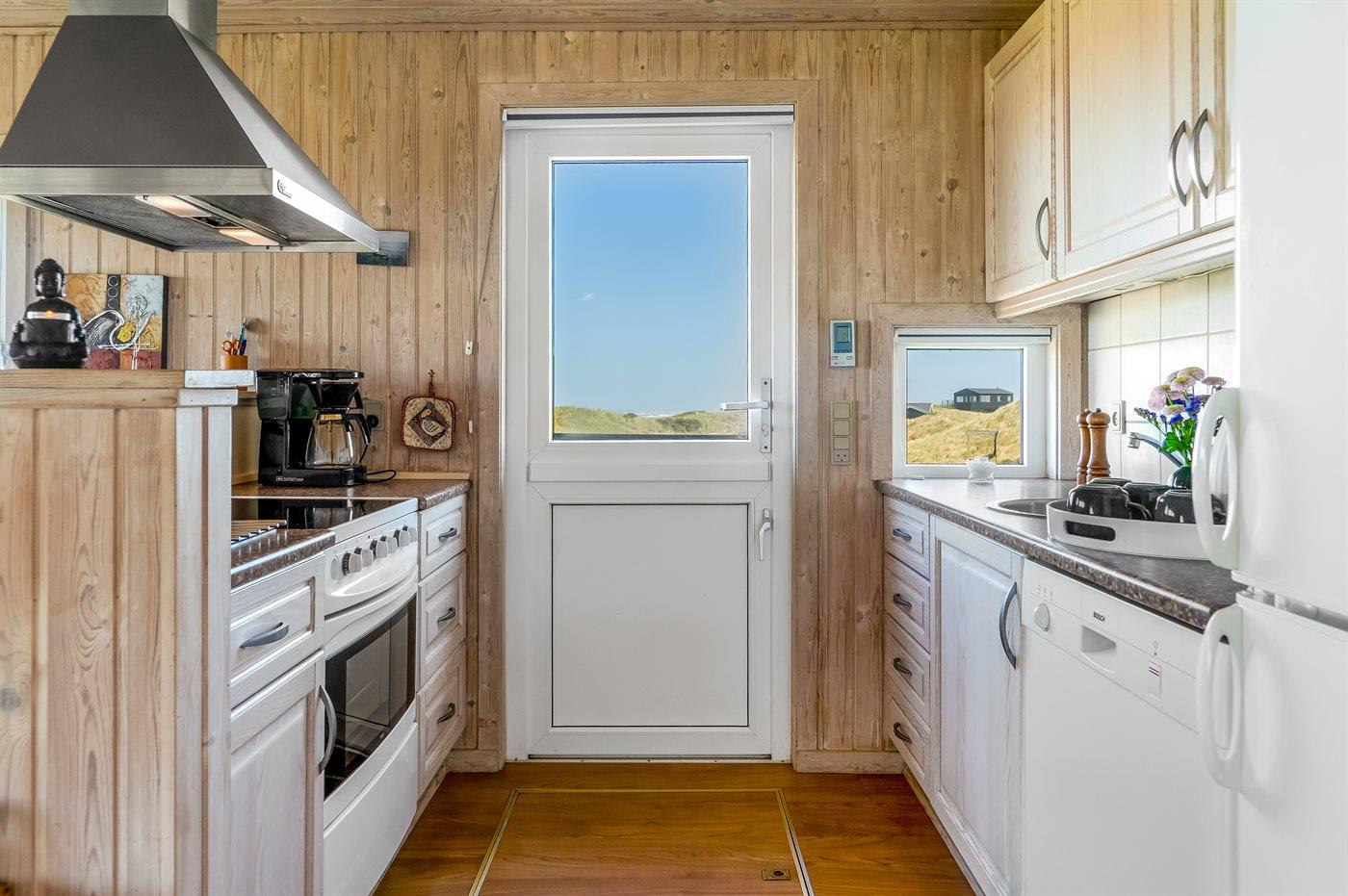 Ferieboligen er beliggende på en 500 m² stor klitgrund. Der er 100 m til havet. Nærmeste forretning er beliggende i en afstand af 2000 m. Til ferieboligen hører 25 m² terrasseareal. Gynge. Udendørs bruser. Parkering ved ferieboligen.