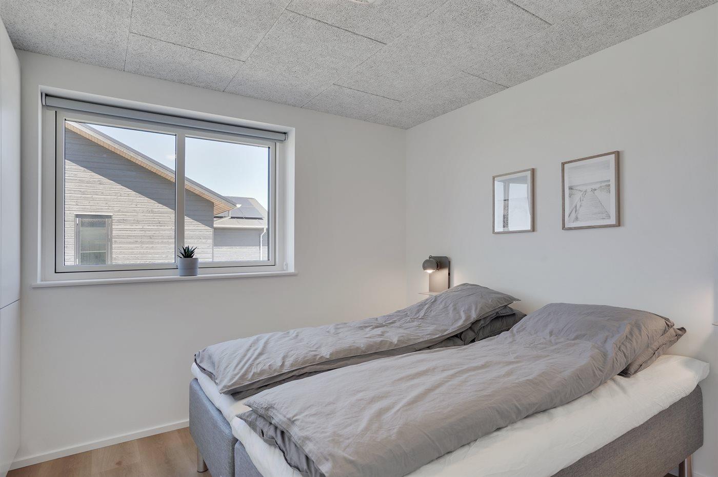 Der er i alt 4 soveværelser. Sovepladserne fordeler sig på: 6 sovepladser i dobbeltsenge. 4 sovepladser i køjesenge. 2 sovepladser på madrasser. 2 af disse sovepladser befinder sig på husets hems. Derudover er der 1 stk. barneseng.