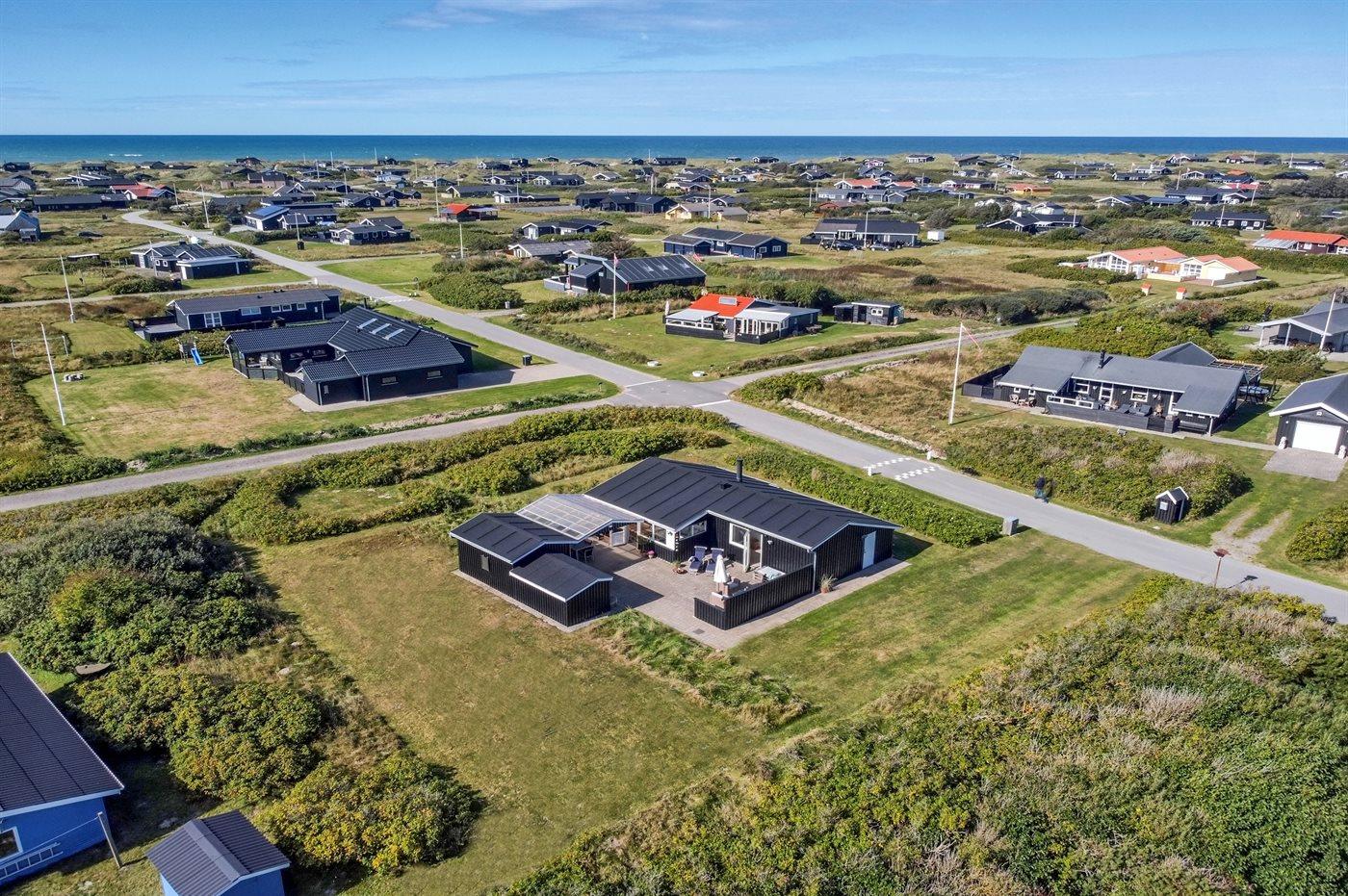 Ferieboligen er beliggende på en 1384 m² stor naturgrund. Der er 500 m til havet. Nærmeste forretning er beliggende i en afstand af 1200 m. Til ferieboligen hører åbent terrasseareal. Desuden er der overdækket terrasse. Sandkasse. Grill til rådighed. Parkering ved ferieboligen.