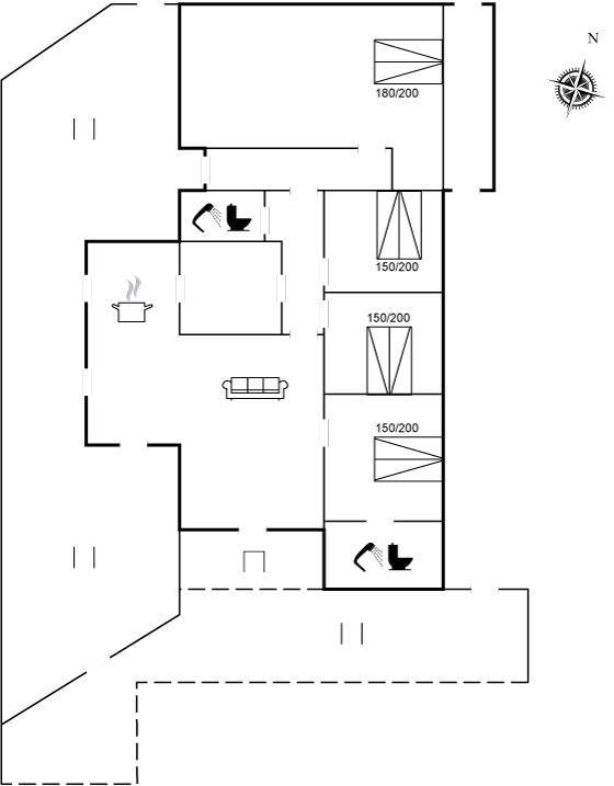 Der er i alt 4 soveværelser. Sovepladserne fordeler sig på: 8 sovepladser i dobbeltsenge. Derudover er der 1 stk. barneseng.