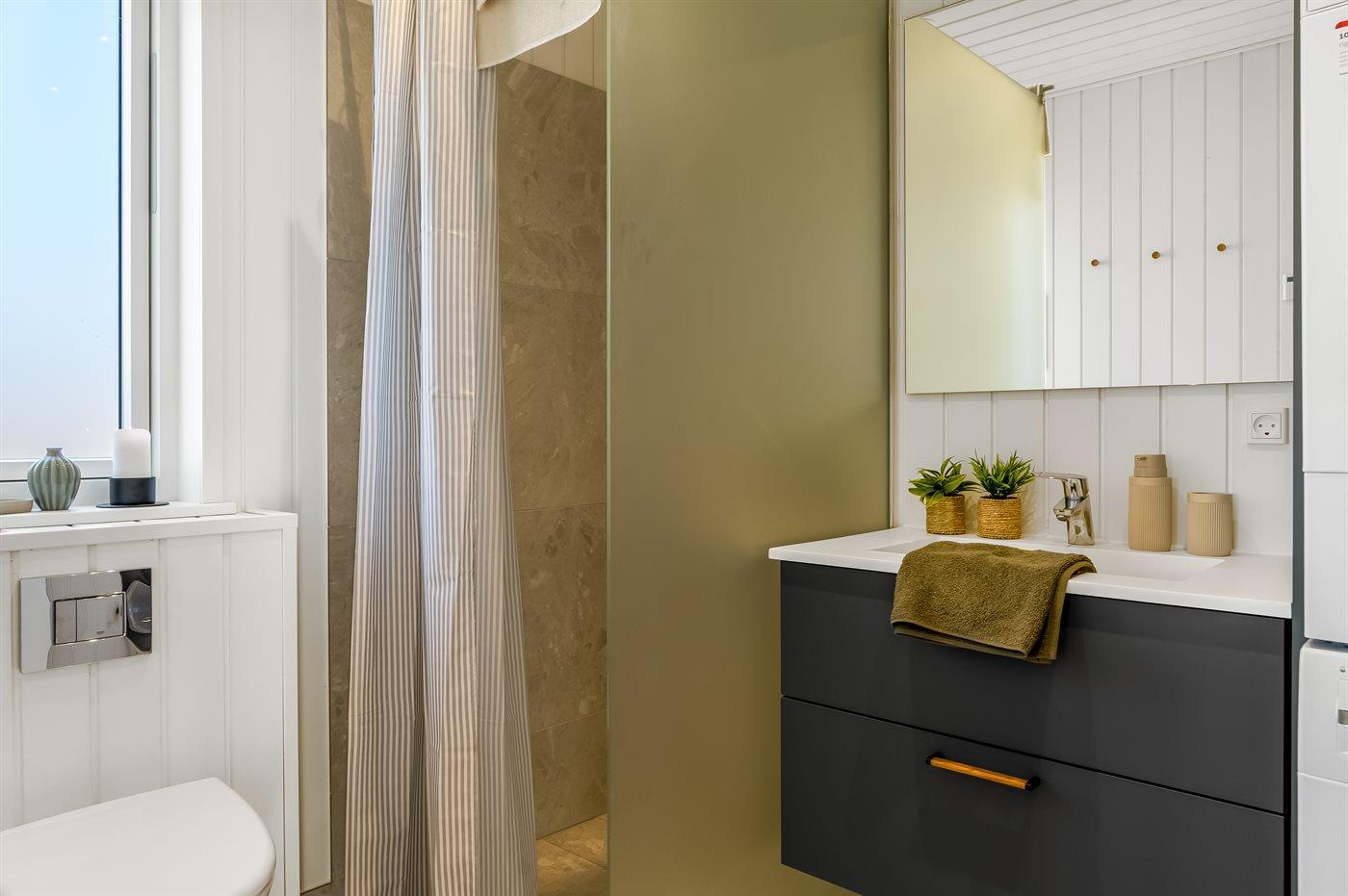 Der er 1 badeværelse med bruseniche og 1 toilet.. Der er gulvvarme på 1 badeværelse.