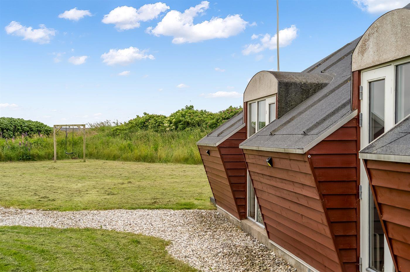 Ferieboligen er beliggende på en 1260 m² stor naturgrund. Der er 500 m til havet. Nærmeste forretning er beliggende i en afstand af 1700 m. Til ferieboligen hører åbent terrasseareal. Desuden er der overdækket terrasse. Der er redskabsrum. Gynge. Sandkasse. Grill til rådighed. Parkering ved ferieboligen.