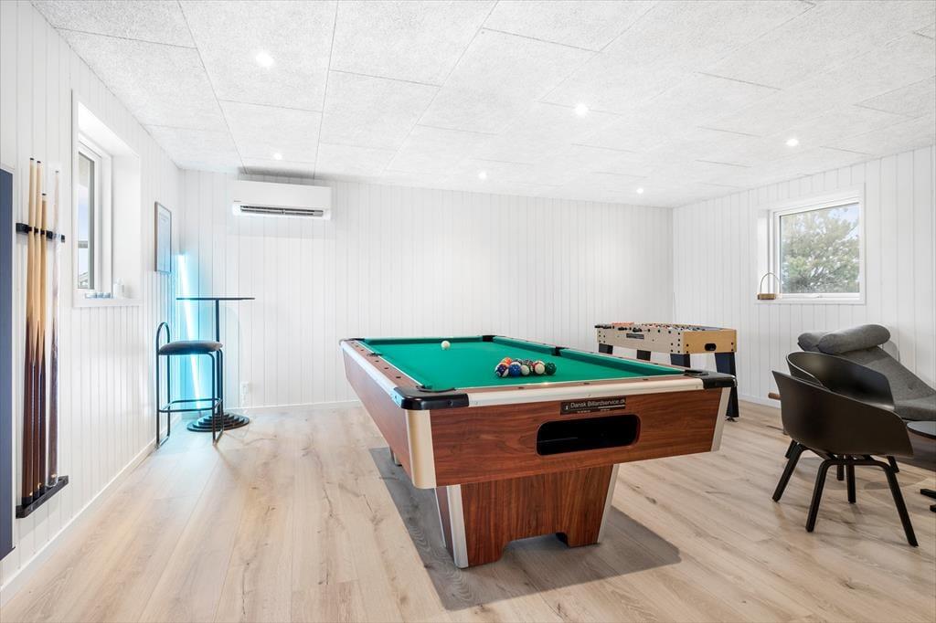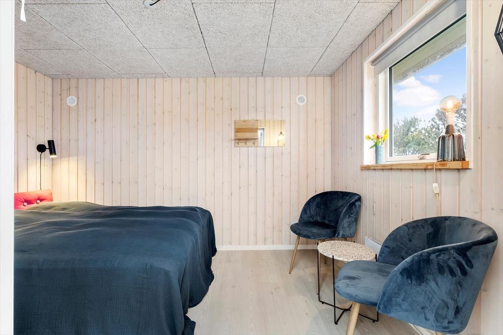 Klassisk sommerhuscharme og moderne design går hånd i hånd på Agathevej 2 nær badebyen Løkken. Det idylliske Kalmar-hus, der ligger her på adressen, er nemlig blevet totalrenoveret i 2024, så hvis du leder efter en lys og stilfuld feriebolig med en særligt skøn atmosfære, har du kig på det helt rette. Inden døre kan du slappe af i saunaen og udfordre familien i bordfodbold i aktivitetsrummet, og hvis der er stemning for at bevæge sig udenfor, er det herligt at bo bare en kort gåtur fra Vesterhavet.