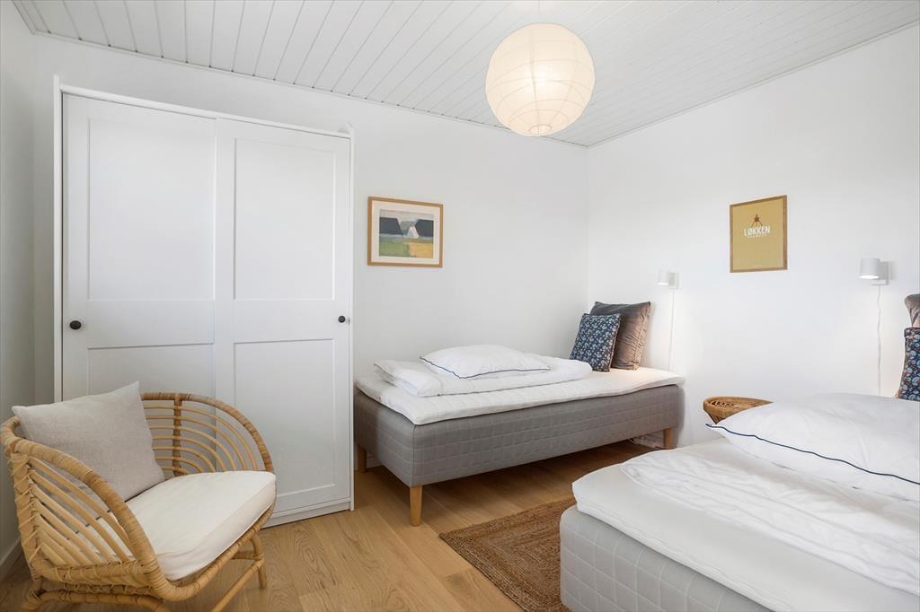 Lyset ved vestkysten er noget ganske særligt, og det oplever I hurtigt, når I holder til helt ude i de yderste klitrækker ud mod Løkken Strand. Det velindrettede hus, der måler 81 m2 fordelt på stueplan og underetage, er udstyret med store vinduespartier vendt mod nord, syd og vest, så fra stuen kan I ikke bare skue ud over havet, men har også et betagende overblik over kysten og ind mod Løkken by. Den lyse stue ligger i åben forbindelse med et velindrettet køkken, og på samme etage finder I et badeværelse med brus og to soveværelser med i alt fire sengepladser. Den rummelige og lyse underetage som I har adgang til fra klitgrunden, byder på endnu et soveværelse, et badeværelse og en stor entré samt et praktisk bryggers med vaskemaskine og tørretumbler. Ønsker I at skylle jer efter en dukkert i Vesterhavet eller blot et varmt bad under åben himmel, er det bare at hoppe under husets udebruser.