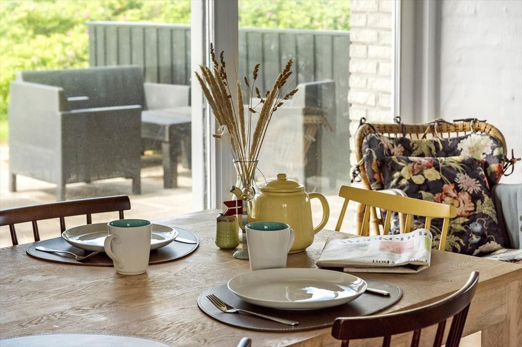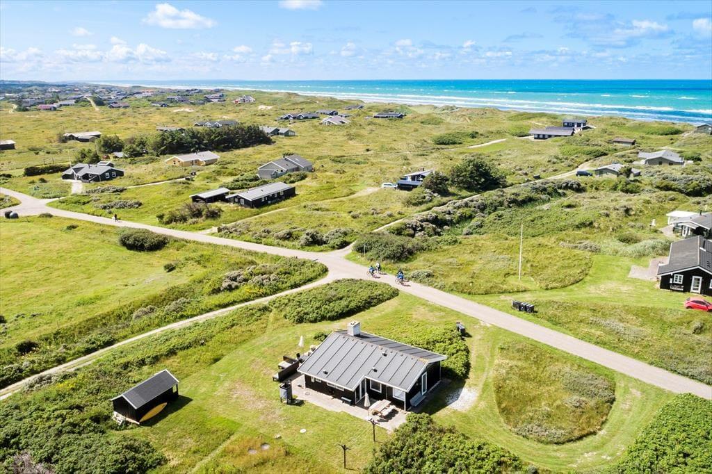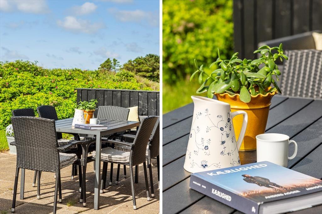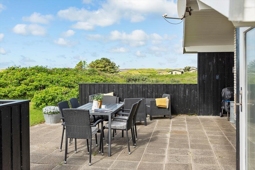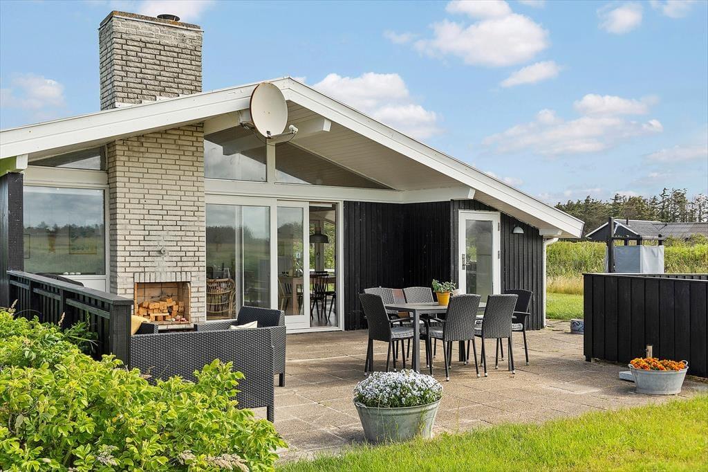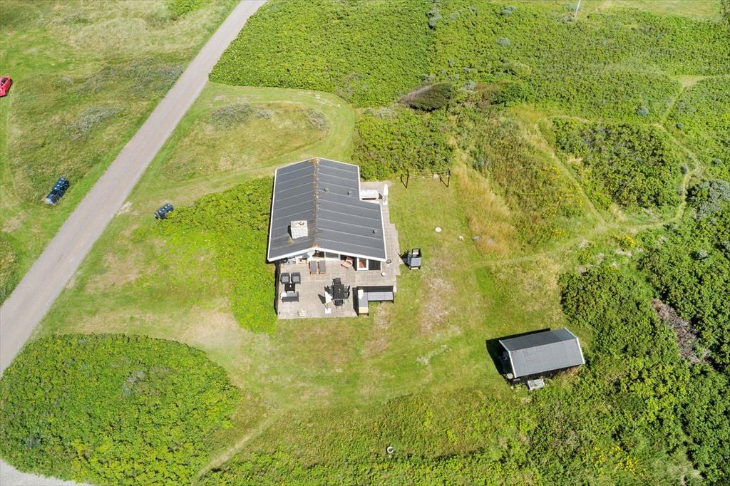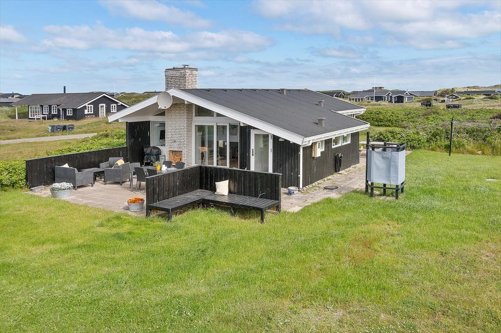På den 2576 m2 store naturgrund har I god plads til leg og havespil på de åbne arealer mellem hybenbuskene. Nær sommerhuset er der flere fliseterrasser at vælge imellem: Den østvendte terrasser er især god først på dagen, hvis I vil drikke kaffe i solen, og senere kan I rykke hen på den sydvendte, der byder på en udendørs pejs, så I kan nyde ferielivet på komfortabel vis, og der er også en udendørs bruser, hvis I vil skylle sand og saltvand af, når I vender hjem fra badeturen.