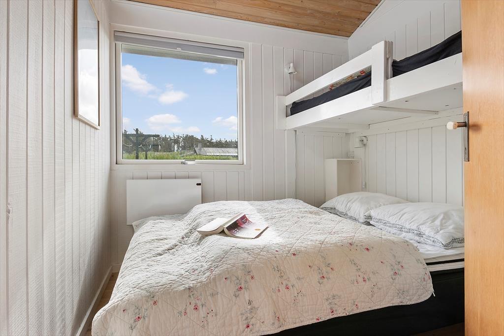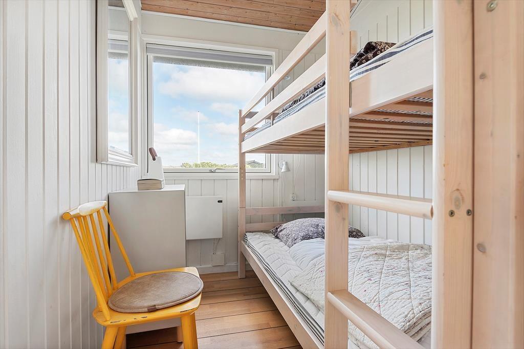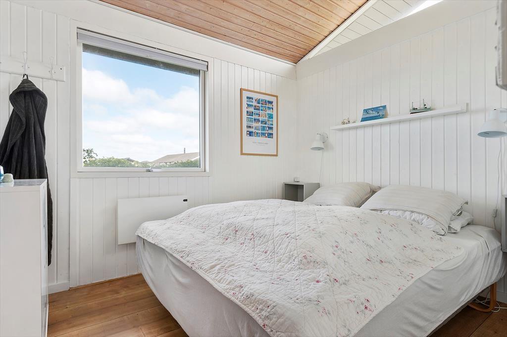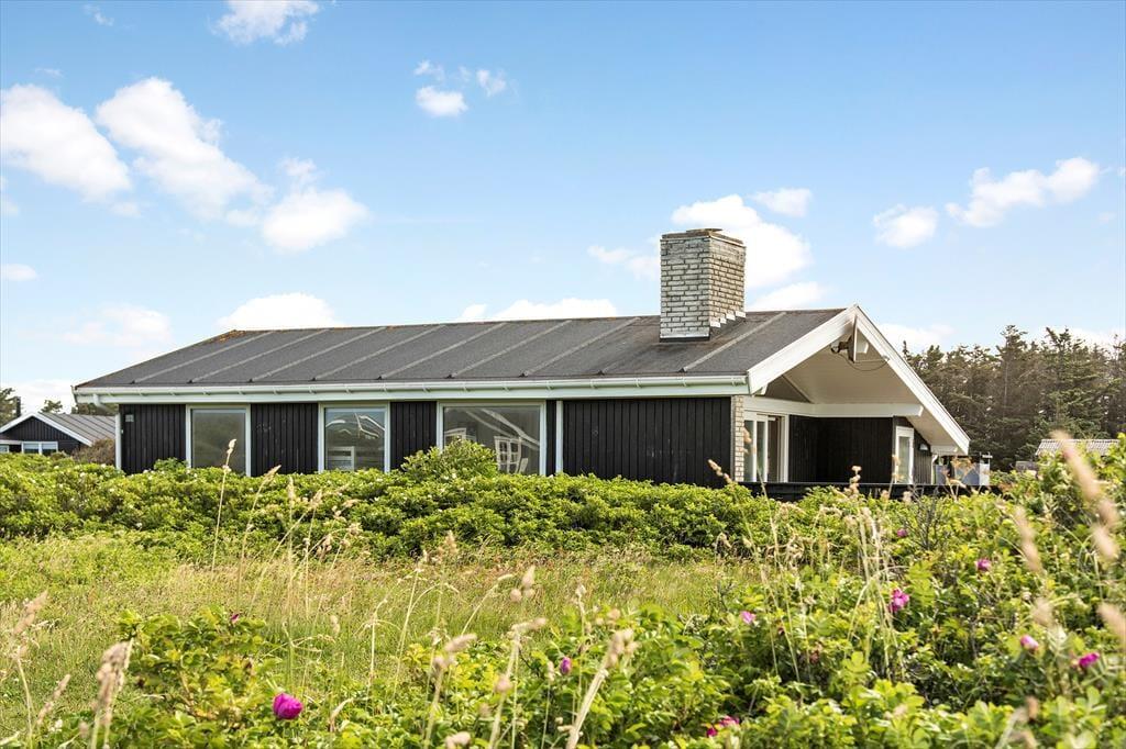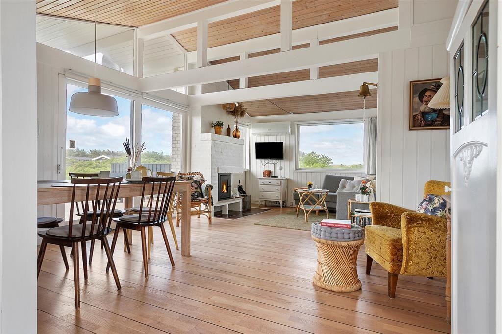 Dette klassiske træsommerhus er blevet renoveret i 2022, og resultatet er en velindrettet feriebolig med en superhyggelig atmosfære. Omgivelserne spiller også en vigtig rolle, for det er skønt at kunne kigge ud på Løkkens smukke kystlandskab – endda med kig til Vesterhavet, der venter 250 meter væk.
