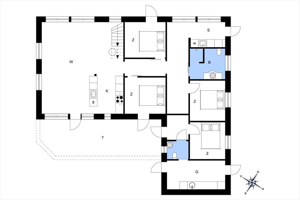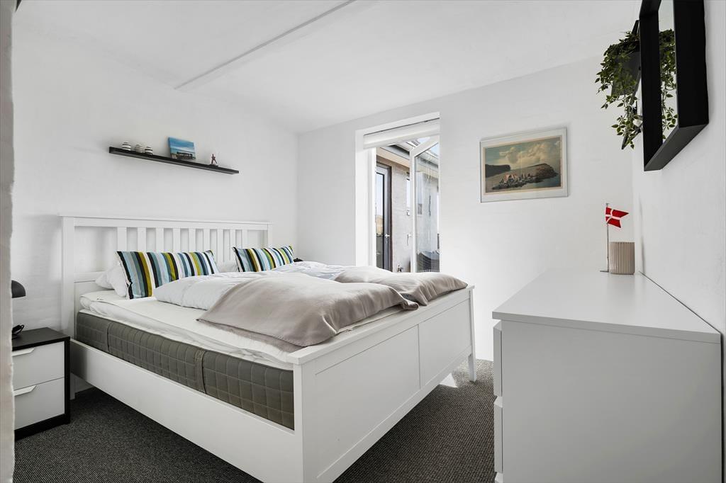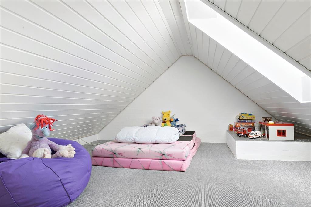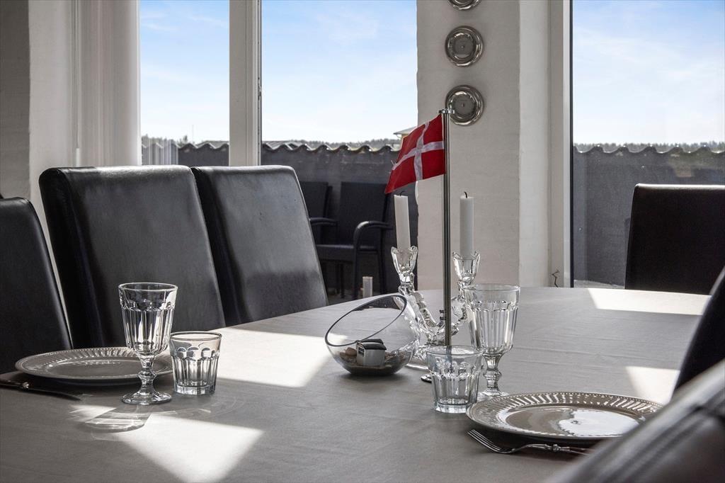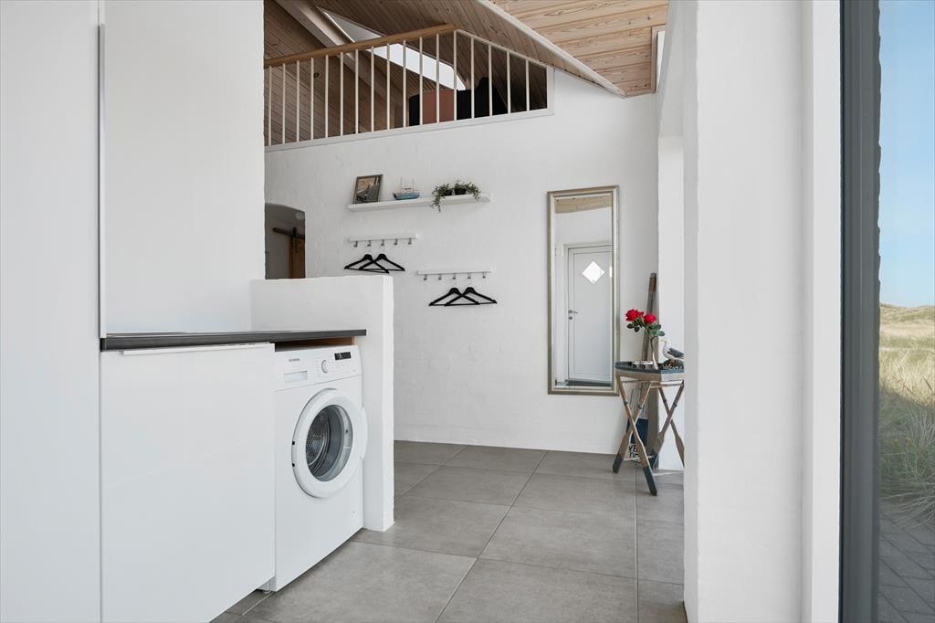 Beliggenheden i første klitrække er helt klart værd at nævne som noget af det første – men også sommerhusets lyse atmosfære og den rummelige planløsning bør fremhæves. Inden døre er der nemlig en flot loftshøjde og store vinduespartier, der inviterer solen og klitomgivelserne indenfor, og med hele 127 m2 har I masser af plads til at folde ferielivet ud. Tre soveværelser, et badeværelse og et bryggers ligger samlet i en velproportioneret afdeling, mens et fjerde soveværelse og et gæstetoilet ligger separat i et anneks med egen indgang. Sommerhusets veludstyrede køkken er integreret med en stor og stilfuld pejsestue, og herfra går der en trappe op til en stor hems, der oplagt kan bruges til en rolig læsestund, en siesta, børnenes leg eller eventuelt overnatning.
