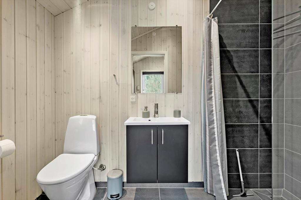Fordi huset er udstyret med to brusebadeværelser, kommer I formentlig ikke til at stå i kø om morgenen for at få et skyl. Det skulle da lige være, hvis I alle vil benytte jer af udebruseren, for det er en herlig måde at starte dagen – ikke mindst fordi den har både koldt og varmt vand. Derudover kan I se frem til mange skønne stunder på den dejlige naturgrund, der skærmes af grantræer og anden bevoksning. I kan finde en dejlig opholdsplads i solen på terrassemiljøet eller slå jer ned ved bålet, og børnene kan gynge, lege i sandkassen og spille bold på græsplænen lige så længe, de orker.