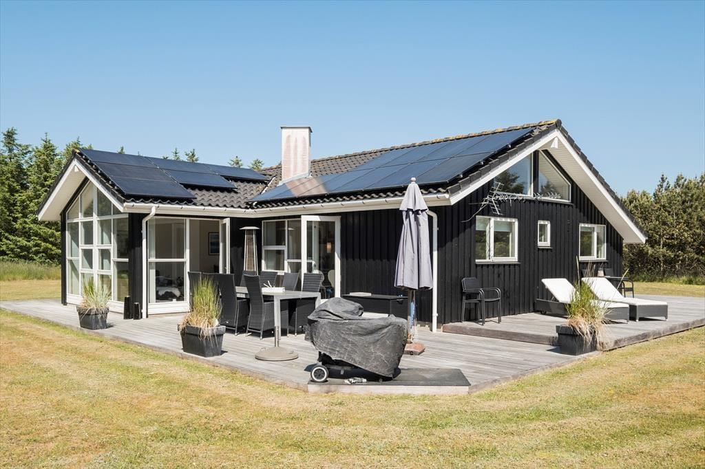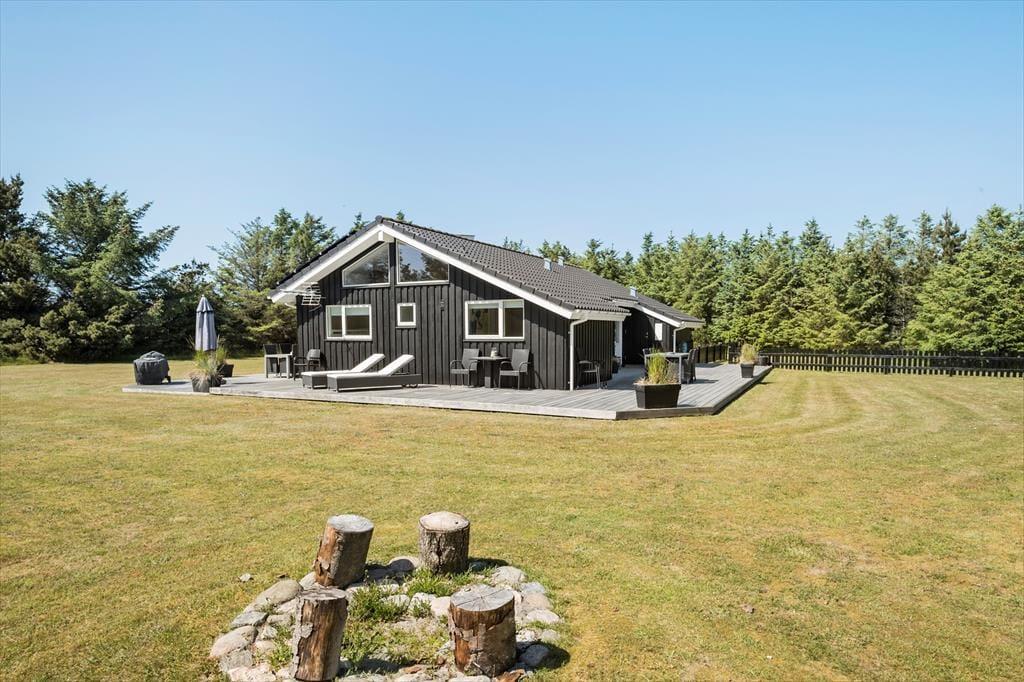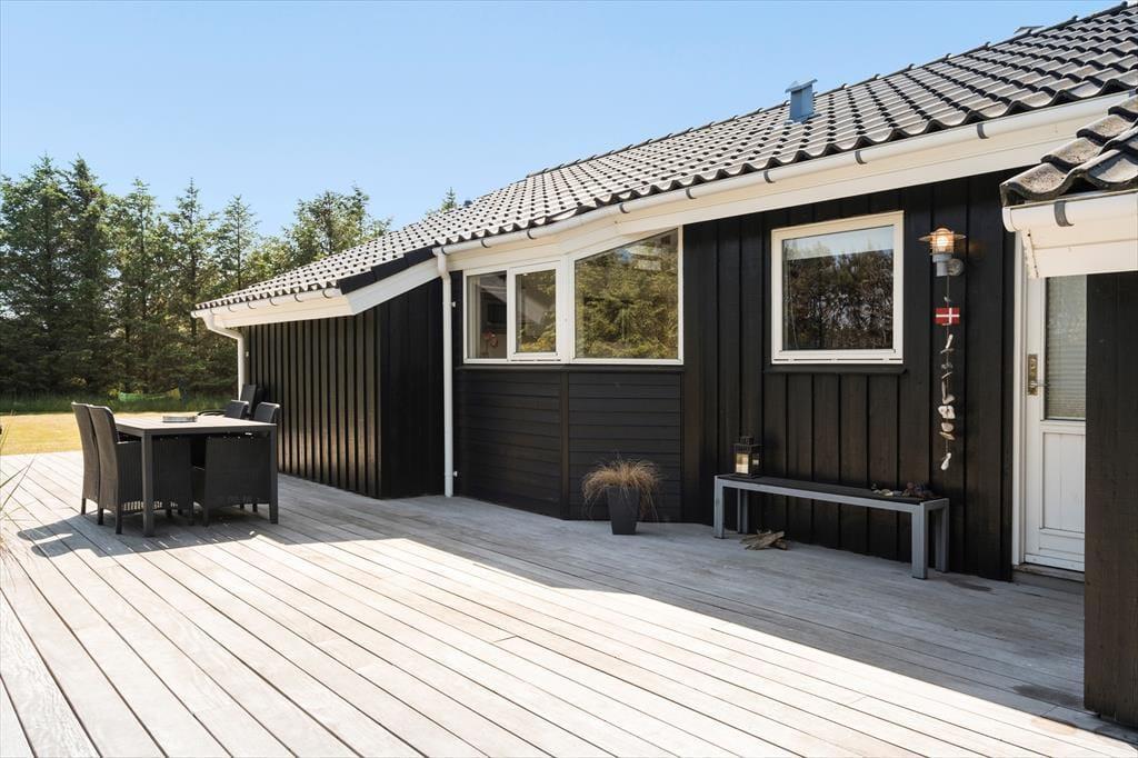 Rundt om sommerhuset breder en stor træterrasse sig, og den er udstyret med liggestole og havemøbler af god kvalitet. Der er også en grill til rådighed, og på solrige sommerdage får I måske lyst til at finde skygge under parasollen, mens de lyse aftener kan bruges rundt om bålet eller at spille bold på græsplænen.