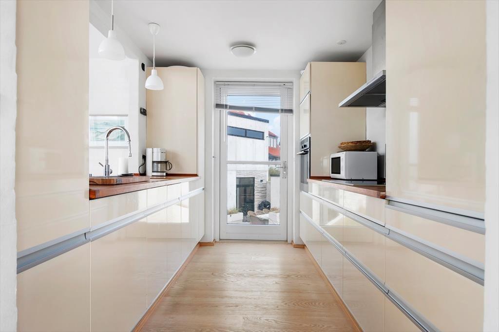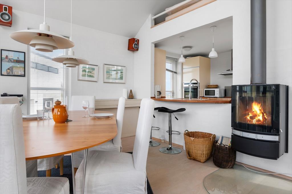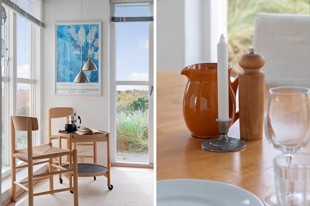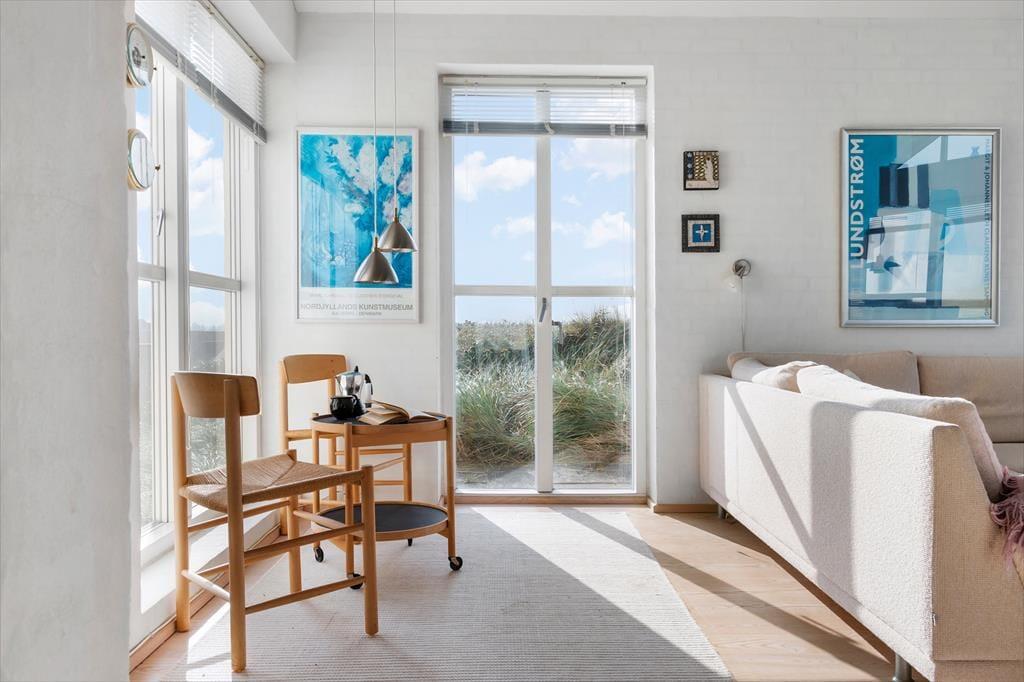 Indenfor mødes du af lyse, moderne rammer, hvor hele familien straks vil føle sig hjemme. Husets hjerte er den åbne forbindelse mellem køkken og stue, der indbyder til hyggeligt samvær – hvad enten det er over morgenkaffen eller en hjemmelavet middag. Gennem de store vinduer strømmer lyset ind, og du kan nyde udsigten til klitterne og havet, mens ilden knitrer i brændeovnen. Huset rummer tre gode soveværelser, der alle er indrettet med øje for både komfort og æstetik. Der er desuden et stilfuldt badeværelse og et ekstra badeværelse i kælderen, som gør det nemt og bekvemt for alle at finde ro i ferien.
