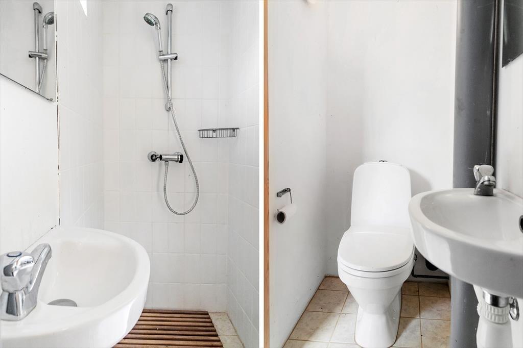Det ekstra toilet befinder sig i garagen og skal tilgås ved at gå udenfor og ind i garagen