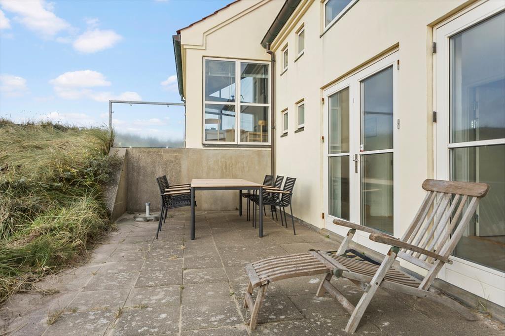 De rummelige terrasser omkring huset er oplagte til afslappende feriedage under åben himmel. Her kan du starte dagen med en frisk havbrise og solopgangen, eller slutte af med en lækker grillmiddag, mens solen går ned i horisonten. Med både læ og solkroge er terrasserne det perfekte sted at finde ro – uanset om du nyder en god bog eller blot lader tankerne flyve til lyden af bølgerne. Beliggenheden gør det nemt at gå på opdagelse i den nærliggende natur, og stranden er kun en kort gåtur væk.