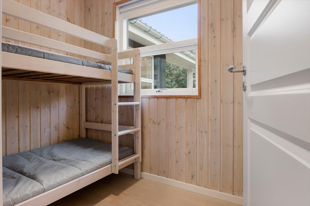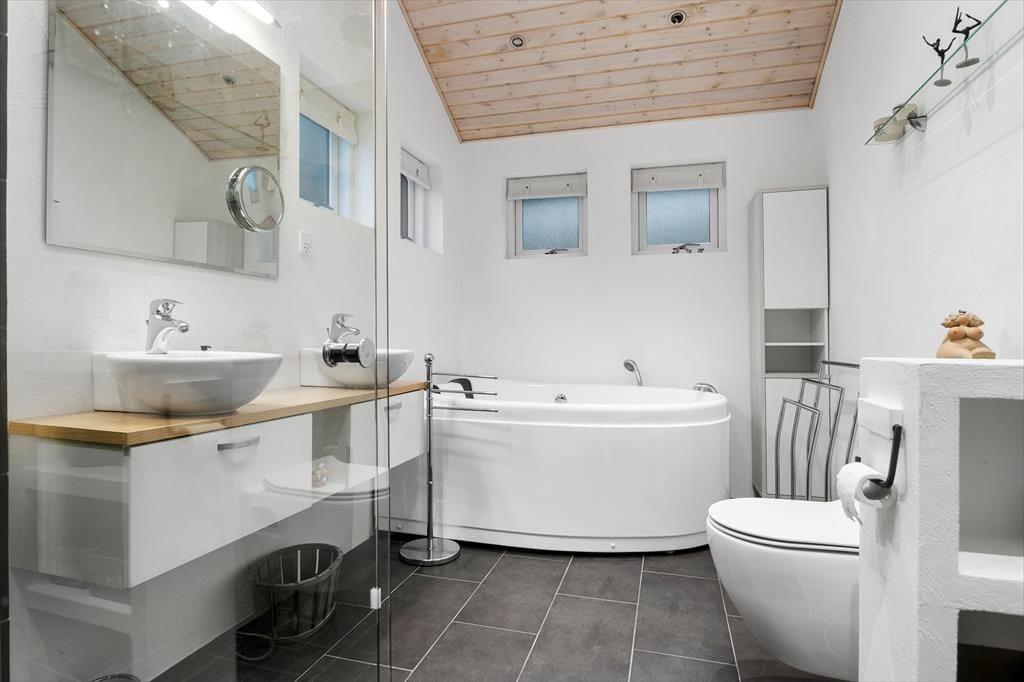 Når du træder indenfor i dette lyse sommerhus, bliver du mødt af et dejligt lysindfald fra de store vinduespartier, som giver rummene en åben og luftig atmosfære. Loftet går til kip, hvilket skaber en ekstra følelse af rummelighed og åbner op for den fine udsigt til naturen udenfor. Stuen og køkkenet er i åben forbindelse, hvilket giver den perfekte ramme for samvær med familie og venner. I stuen kan du slappe af foran den hyggelige brændeovn, der skaber varme og hygge på de køligere aftener. Sommerhuset har i alt fire soveværelser, samt en alkove i stuen så der er plads til hele familien eller en gruppe venner. Med to badeværelser, hvoraf det ene har et luksuriøst spabad, får du den perfekte mulighed for at forkæle dig selv efter en lang dag ved stranden.
