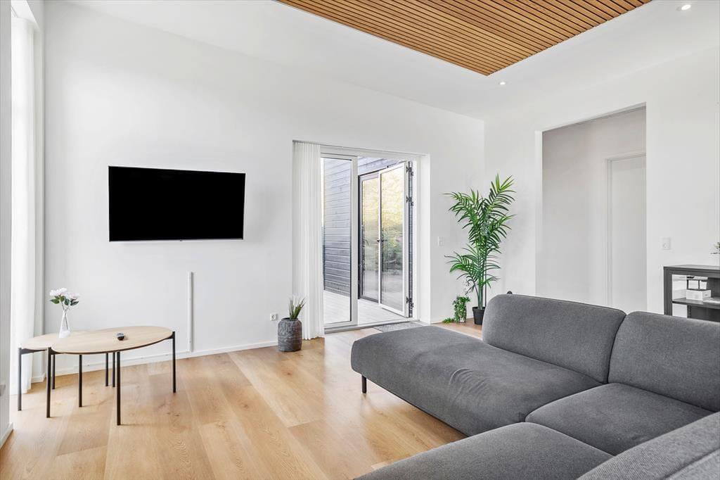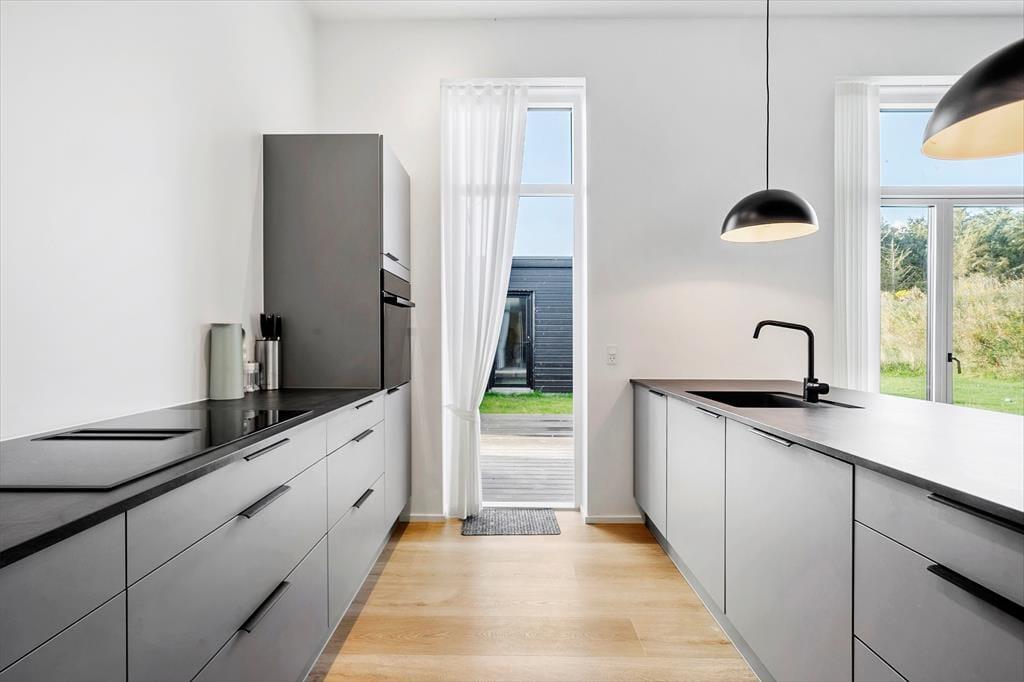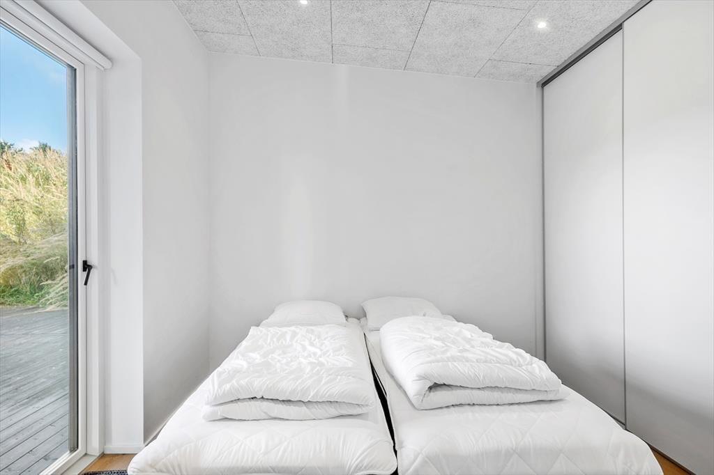 Allerede når du træder indenfor i sommerhuset, mødes du af en skøn fornemmelse af lys og luft. Det naturlige lysindfald strømmer ind gennem de store vinduespartier og fremhæver de lyse materialer og den åbne indretning. Husets hjerte er opholdsrummet, hvor køkken og stue er integreret i ét stort, sammenhængende rum. Her kan hele familien samles om madlavningen, spille brætspil ved spisebordet eller nyde en rolig stund i sofaen. De fire gode værelser giver rigeligt med soveplads og privatliv, hvis I er flere afsted, og med to badeværelser og i alt to toiletter er komforten i top. Uanset om ferien står på afslapning eller aktivitet, danner dette velindrettede sommerhus en skøn ramme for jeres tid sammen.