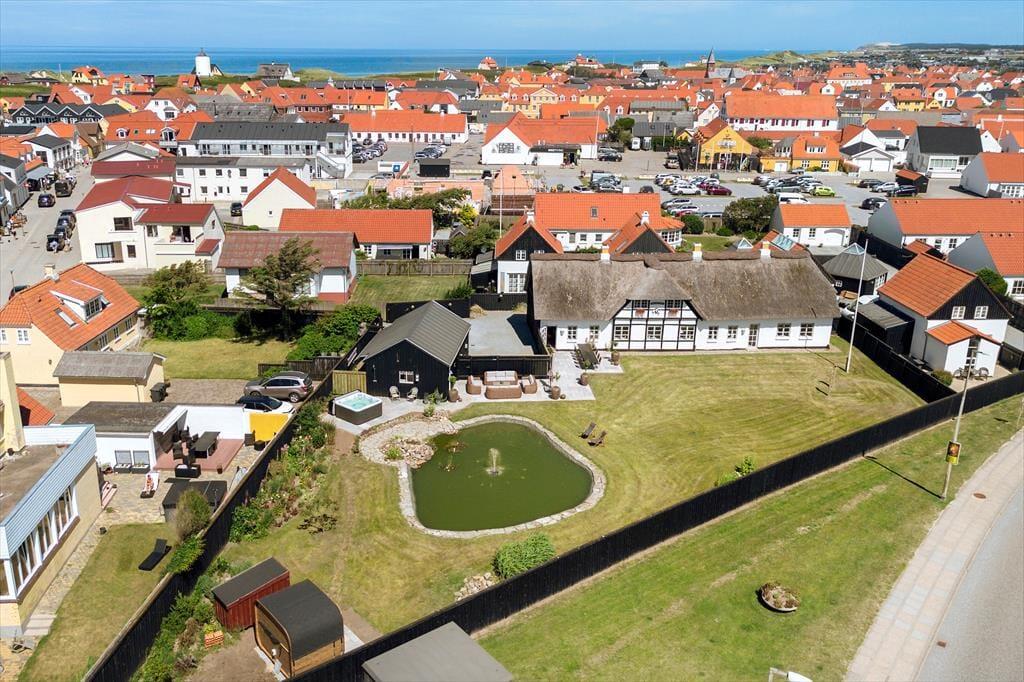 Et ferieophold i dette charmerende, historiske sommerhus i hjertet af Løkken er en oplevelse ud over det sædvanlige. Her får du det bedste fra både bylivet og naturen – for huset ligger tilbagetrukket og fredeligt med udsigt til en idyllisk havesø, hvor fiskene svømmer under vandoverfladen. I den store, grønne have kan du nyde roen og det hyggelige udeliv, mens børnene boltrer sig frit. Og med både indendørs og udendørs spabad, sauna og et aktivitetsrum med pool og dart er der lagt op til afslapning og underholdning for hele familien – året rundt.