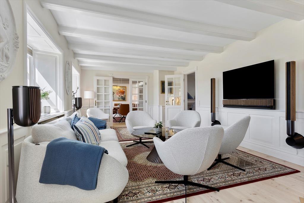 Sommerhuset emmer af personlighed og varme, og den hyggelige atmosfære mærkes allerede i husets hall, hvor du træder ind til et hjem med sjæl og historie. Indretningen er intim og hjemlig, og du fornemmer straks, at dette sted har været rammen om mange gode stunder. Køkkenet er lyst og åbent og har direkte forbindelse til spisestuen, hvilket gør det nemt og naturligt at samles over dagens måltider. Herfra er der udsigt til haven og søen, der spejler solen i de lyse timer. De fem soveværelser fordeler sig praktisk i huset, og tre badeværelser sørger for, at ferien kan glide nemt og ubesværet – selv når I er mange afsted. Skal ferien krydres med lidt selvforkælelse, kan I sætte jer i det varme spabad, lade skuldrene sænke sig i saunaen eller tage et spil dart i aktivitetsrummet. Uanset om du søger ro eller sjov, rummer dette sommerhus noget for enhver smag.