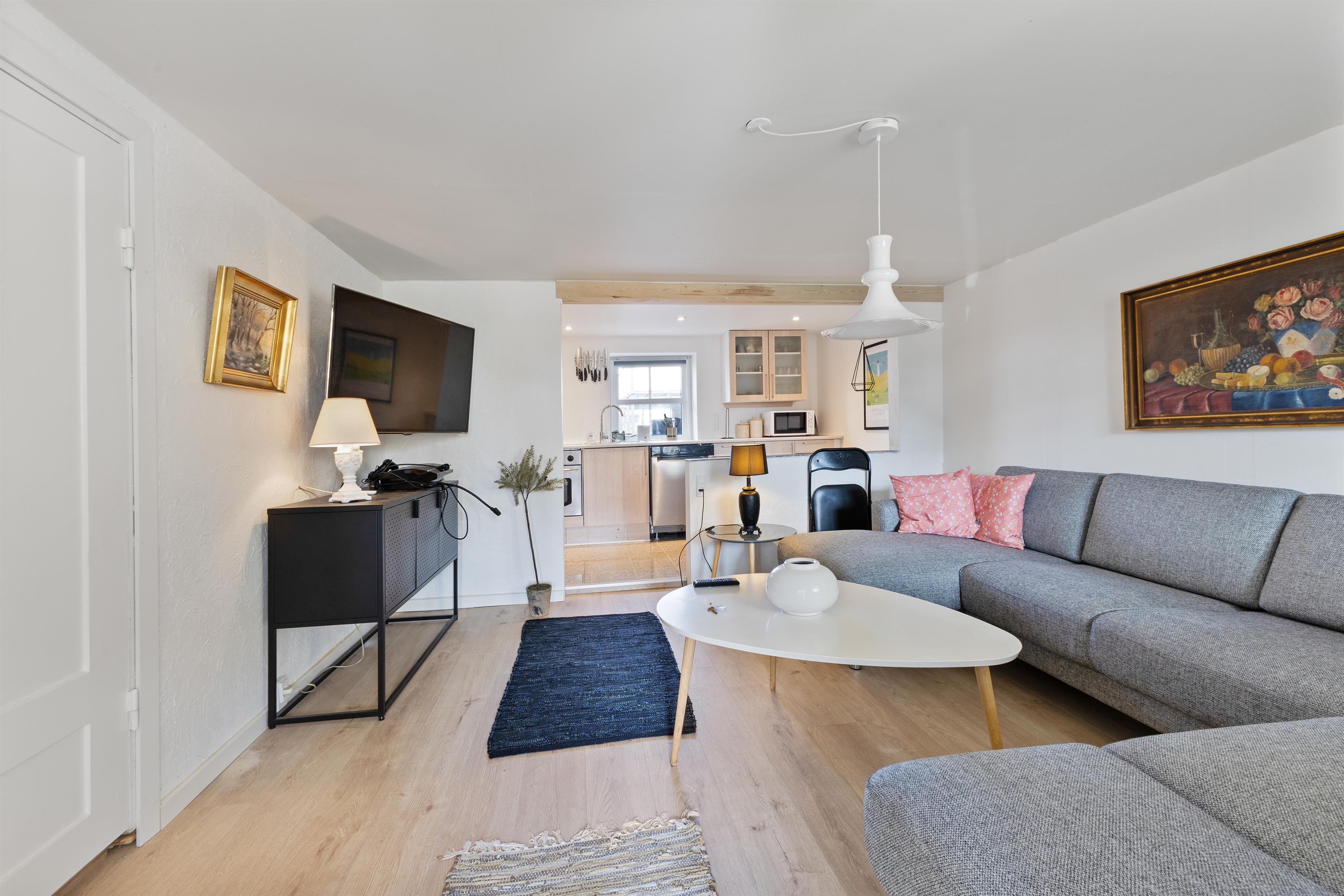 Hyggelig ferielejlighed i Løkken med åben køkkenalrum, badekar og tæt på strand og byliv.