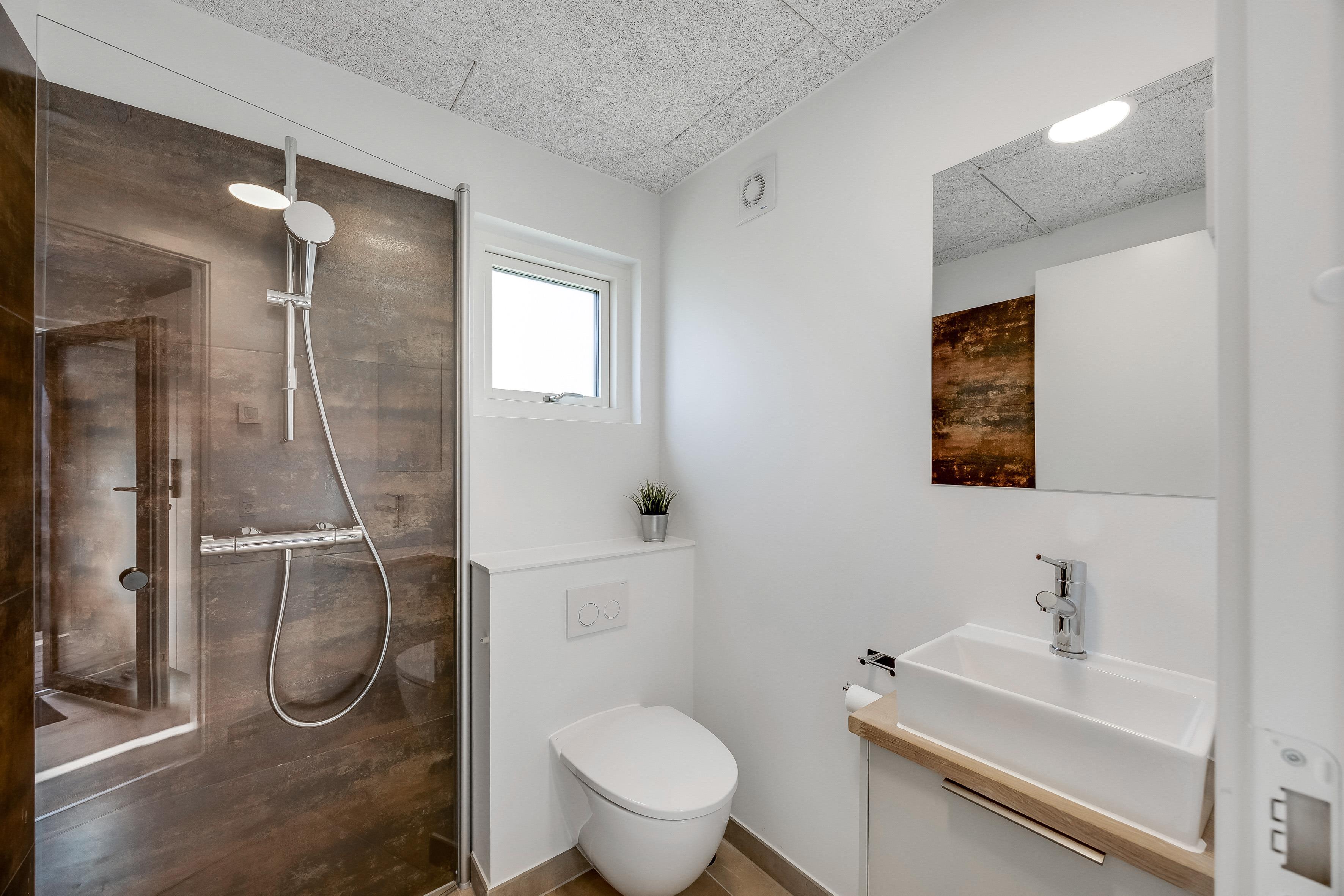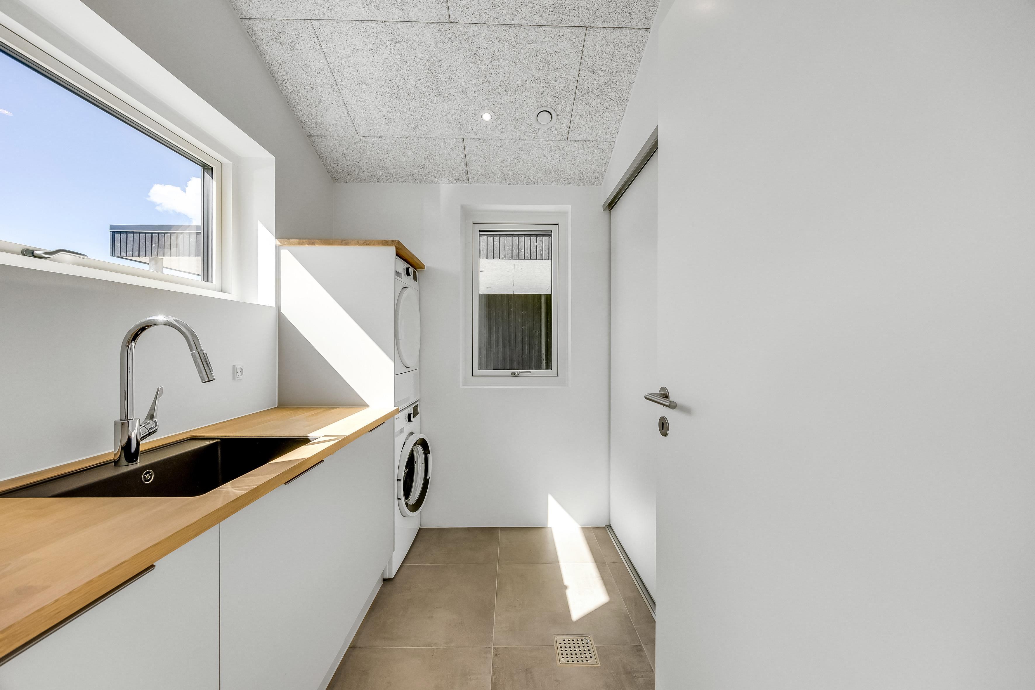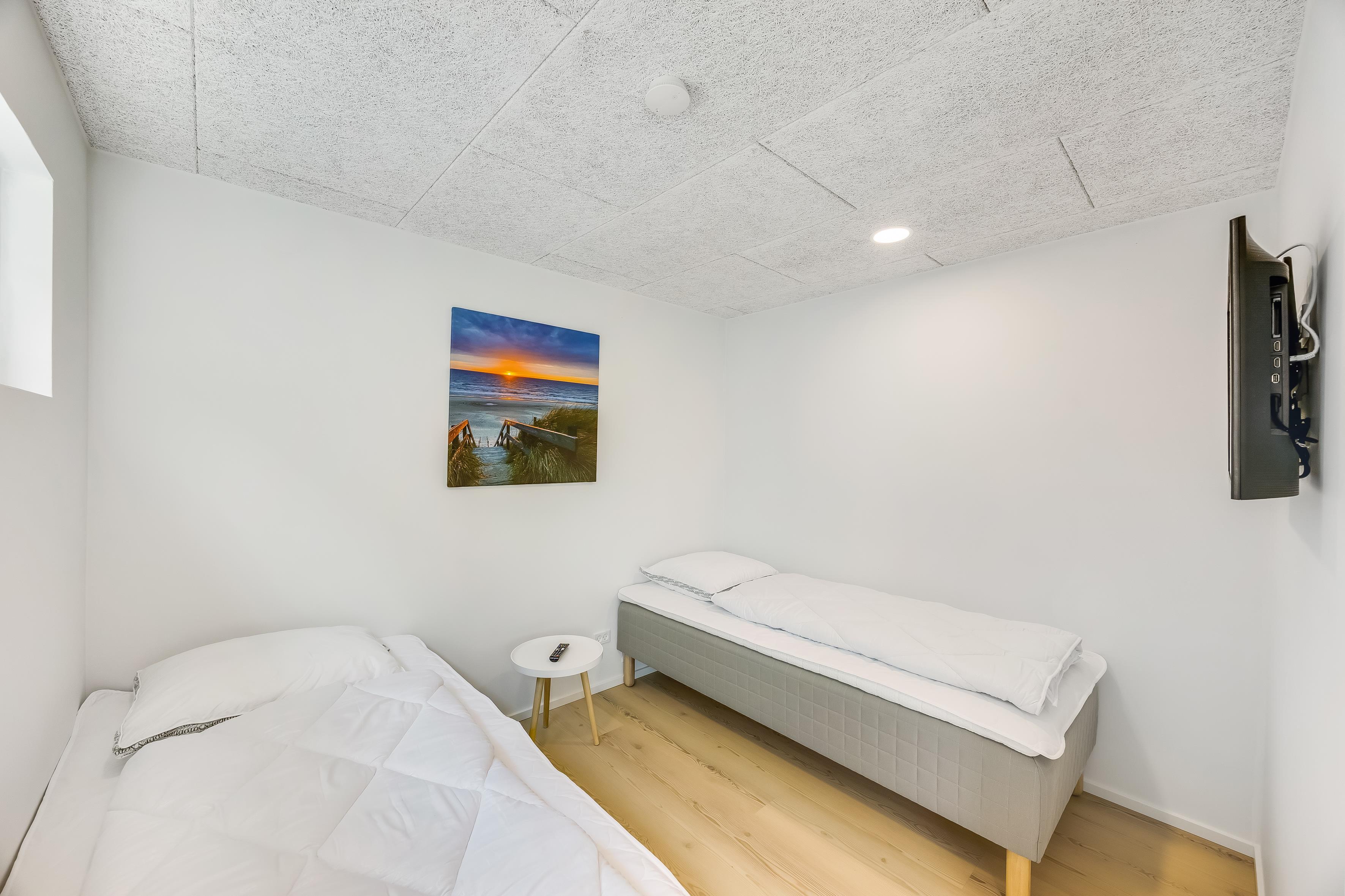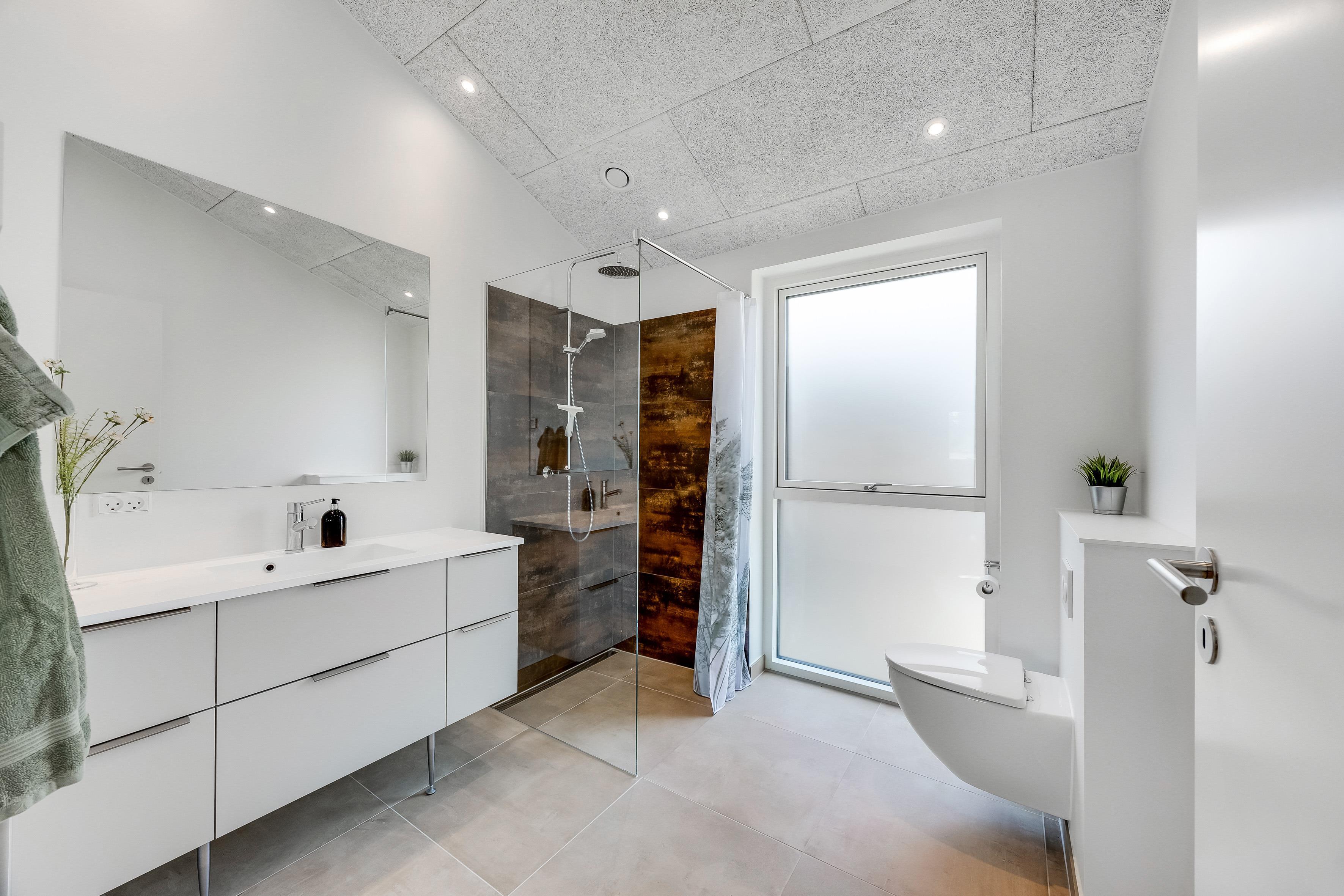 Hovedhuset har plads til 6 personer, og i det hyggelige anneks er der yderligere 2 sovepladser samt eget bad – i alt 8 sengepladser fordelt på 3 dobbeltsenge og 2 enkeltsenge. Her får du en bolig med et flot, åbent køkken-alrum i forlængelse af stuen, hvor indretningen er lys og gennemtænkt. Badeværelserne er rummelige og stilfulde, og ved indgangen ligger et praktisk bryggers. Selvom huset ligger i et nybyggerkvarter, er det velplaceret med fokus på privatliv.