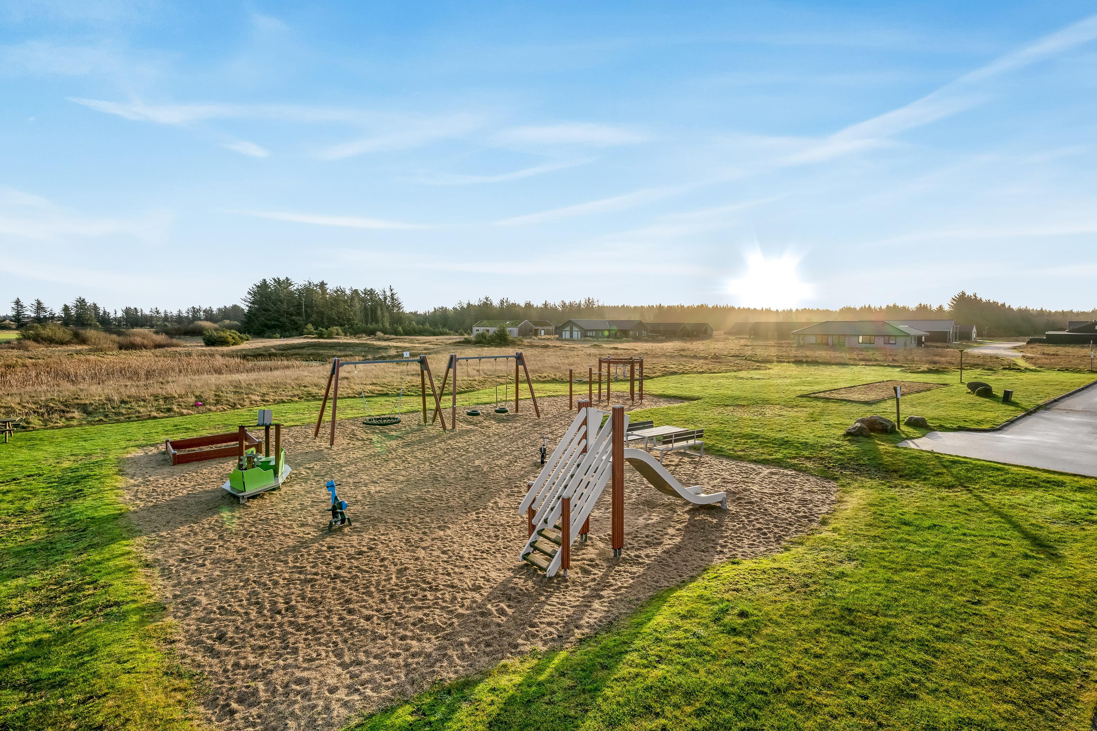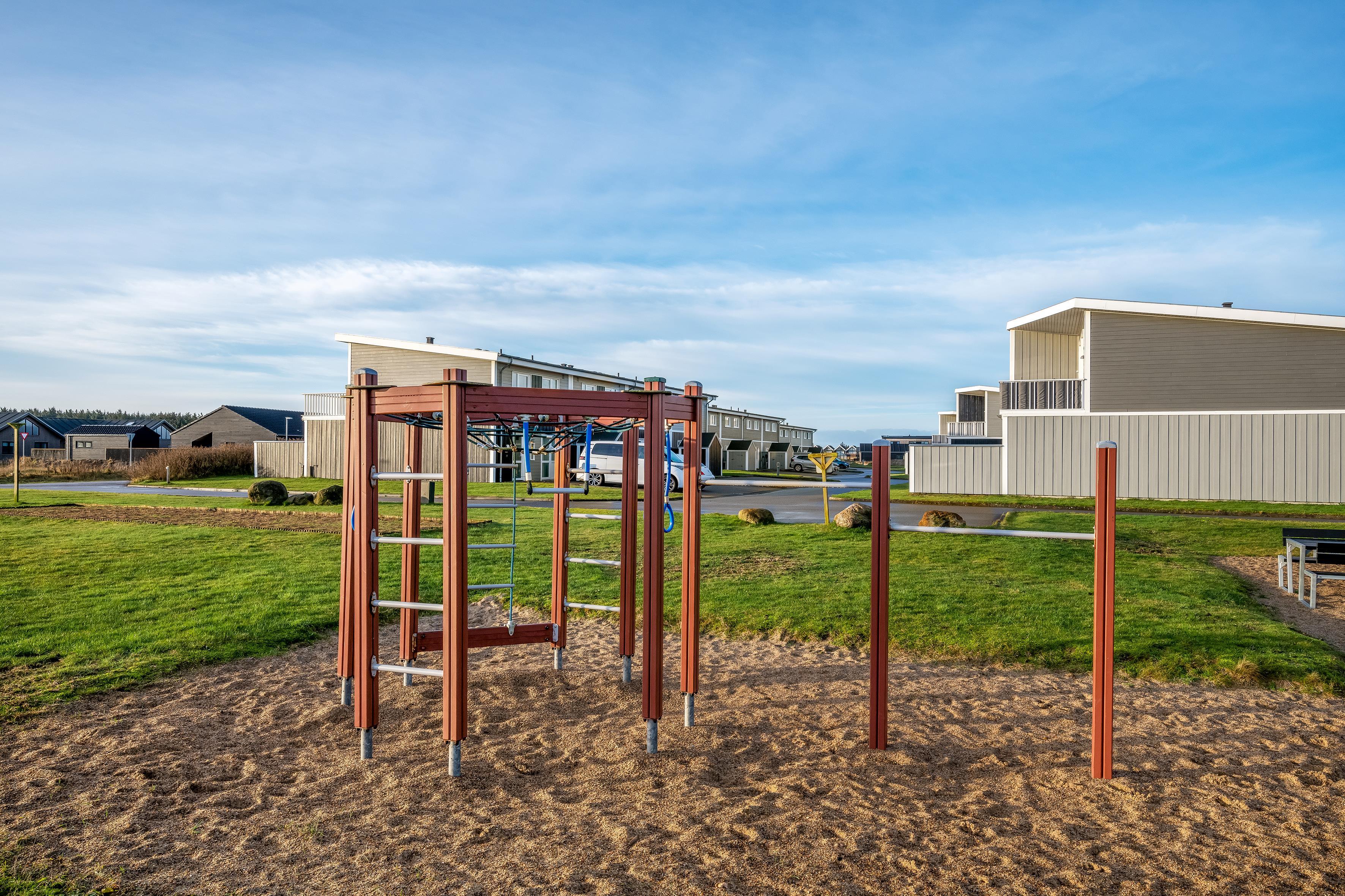 Haven og terrassen inviterer til både afslapning og aktivitet – uanset tidspunktet på dagen. Med flere terrasser, herunder en overdækket del, er det let at finde læ og sol. Der er god plads til leg og hygge, og fra huset er der kort afstand til både strand, by og indkøb – alt ligger inden for cirka en kilometer.