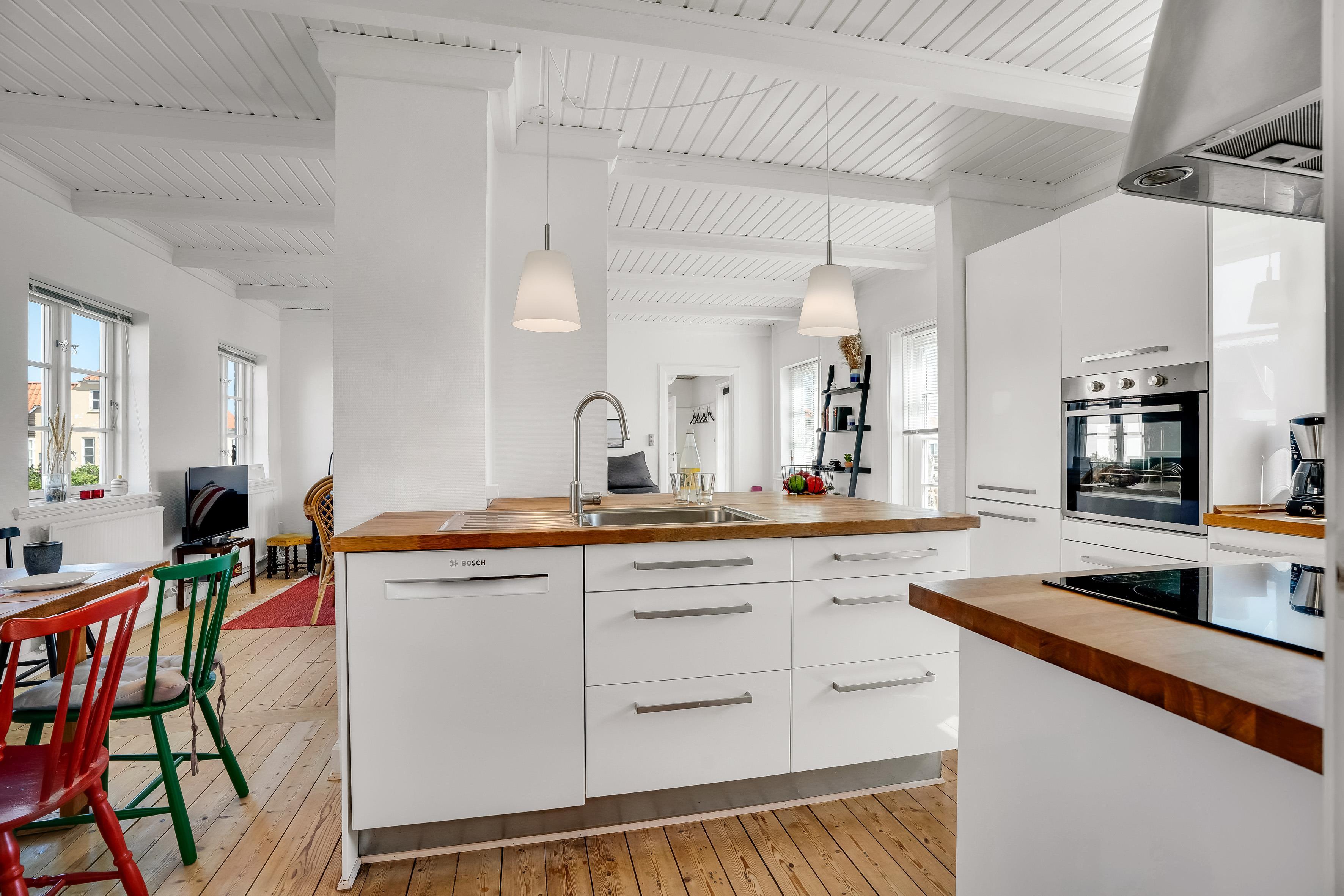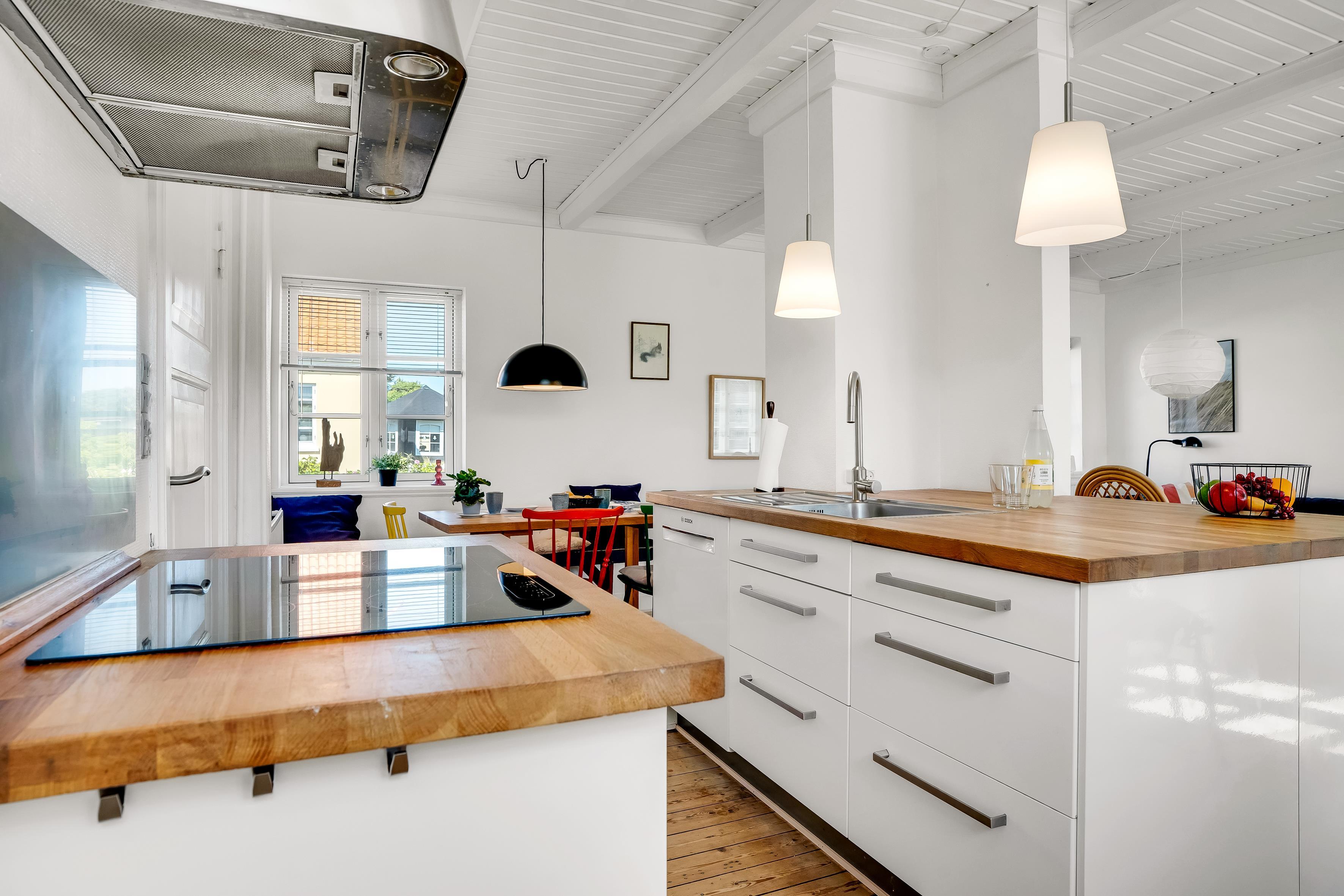 Trods husets centrale placering, er der også en dejlig have til huset, der er skjult bag et hegn, og byder på en fredelig oase netop overfor Løkken Idrætscenter, hvor der er svømmehal, fitnesscenter og paddletennis. Fra stuen kan I gå direkte ud på den sydvendte terrasse, der er ideel til afslapning.