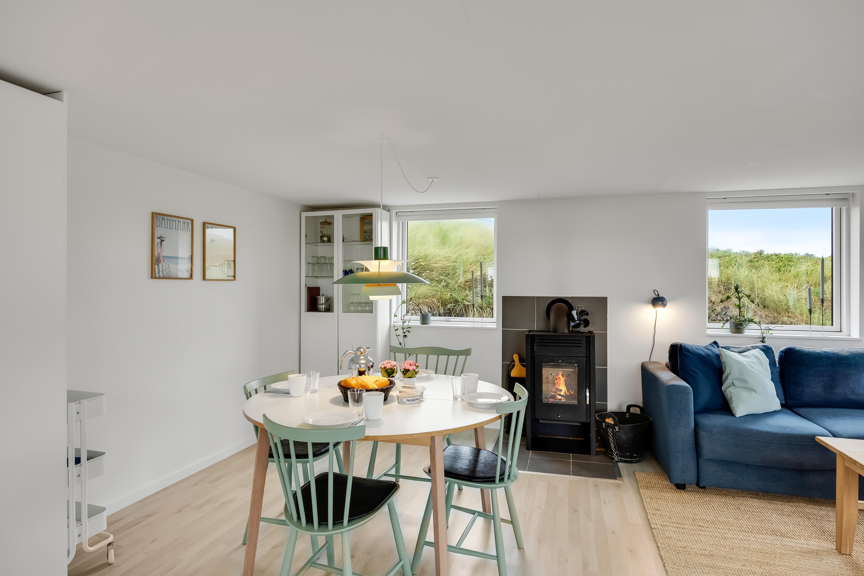 I sommerhuset finder du en rummelig stue med brændeovn og et lyst og dejligt køkken – ideelt til hyggelige aftener og gode måltider med vennerne eller familien. Sommerhuset rummer to soveværelser, begge med dobbeltsenge og en lys og rolig indretning, som giver de bedste rammer at hvile sig efter en lang dag på stranden eller andre af de uendelige muligheder, der er for oplevelser i Løkken og omegn.