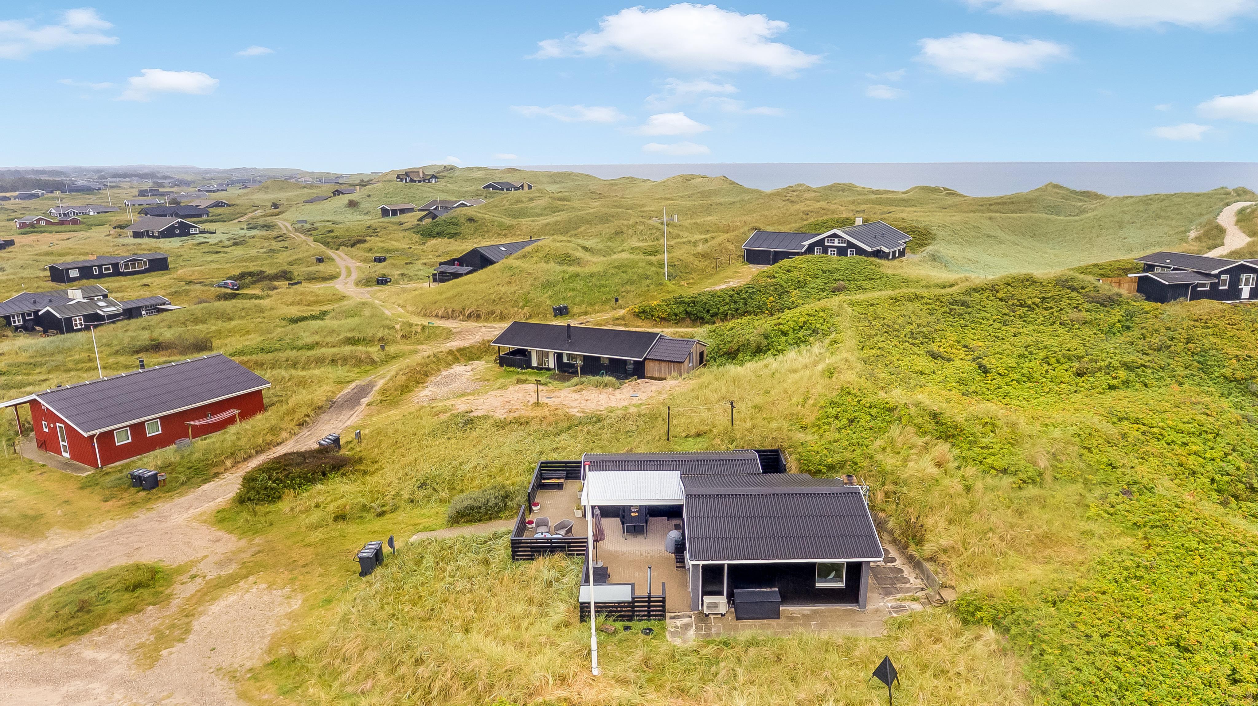 Fra stuen har du en skøn udsigt til områdets smukke natur og andre sommerhuse, og med den korte afstand til stranden og kun ca. 2 km til centrum af Løkken, får du både ro og liv lige i nærheden.