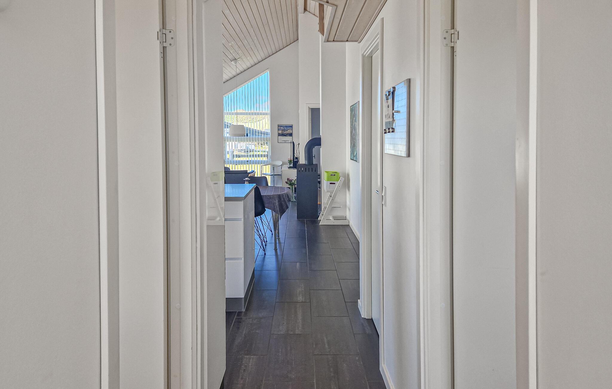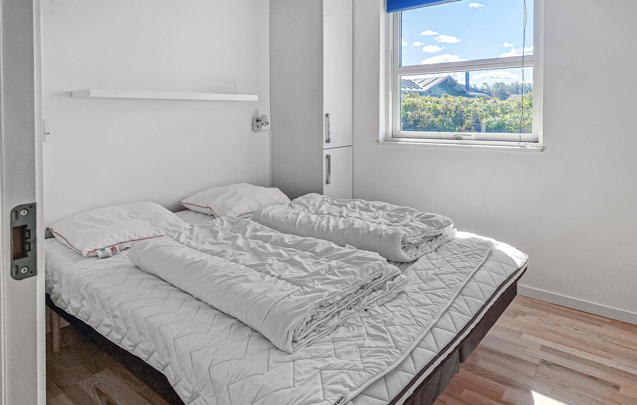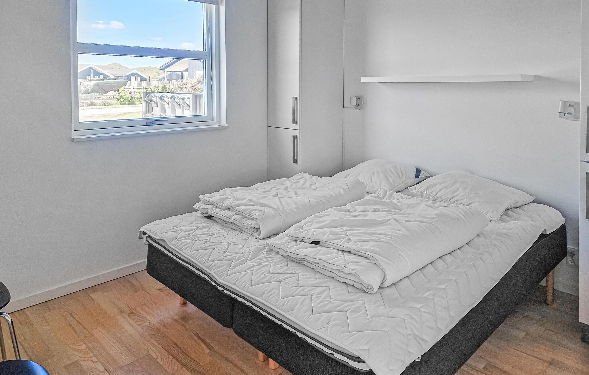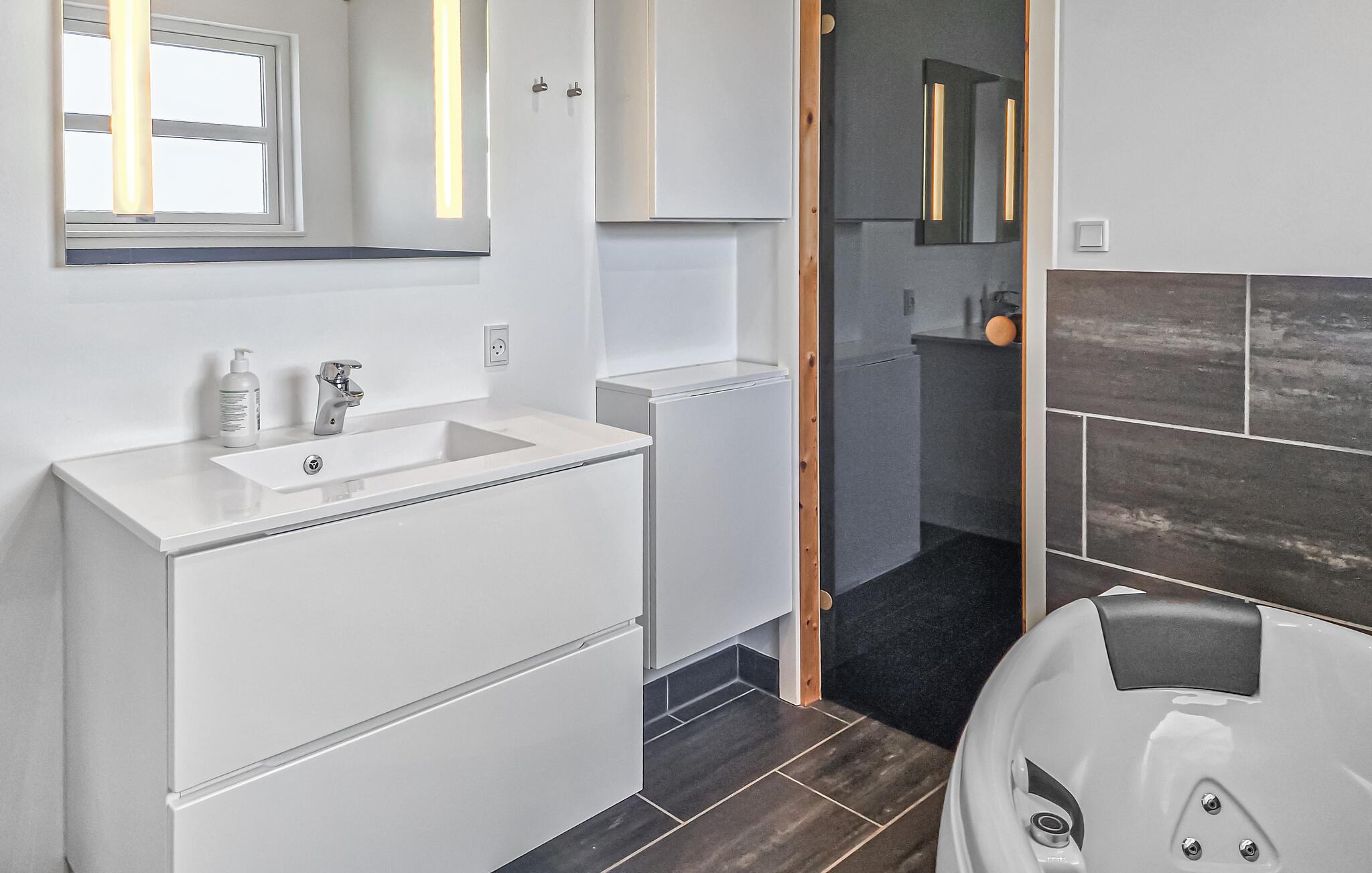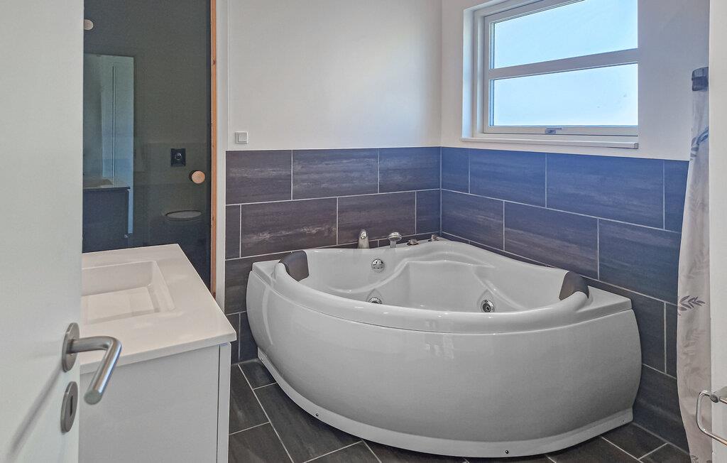 Tilbring afslappende stranddage, forskellige udflugter og hyggelige timer i jeres feriehus, der kombinerer stilfuld indretning med en fredelig beliggenhed. Opholdsstuen har højt til loftet og store vinduer, der lukker masser af naturligt lys ind. Gør jer komfortable i sofaerne og nyd varmen fra pejsen. Brug spiseområdet til fælles måltider og tilbered lækre retter i det moderne køkken med kogeø. Efter en begivenhedsrig dag kan I slappe af i badeværelset med spabad og sauna og forkæle jer selv med lidt fritid.