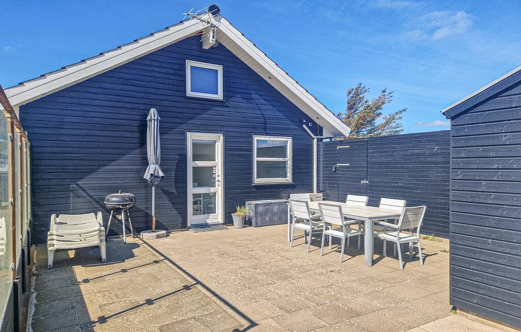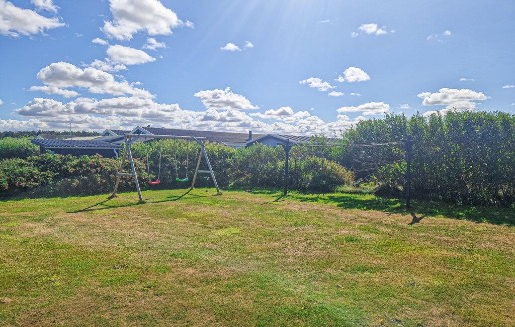 Tilbring hyggelige timer på den overdækkede terrasse. Sid ved det store udendørs spisebord eller slap af på liggestolene. Afslut dagen med et glas vin under åben himmel. Haven med græsplæne og gynger giver børnene plads til at lege og sørger for, at selv de små vil have det sjovt.