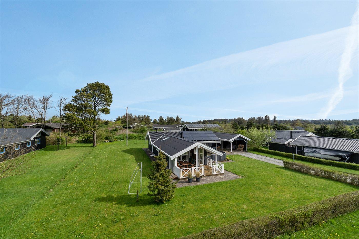 Ferieboligen er beliggende på en 1300 m² stor naturgrund. Der er 700 m til havet. Nærmeste forretning er beliggende i en afstand af 500 m. Til ferieboligen hører 65 m² terrasseareal. Desuden er der 14 m² overdækket terrasse. Der er carport til rådighed. Der er installeret stik til opladning af elbil. Med 11 kW ladeeffekt.