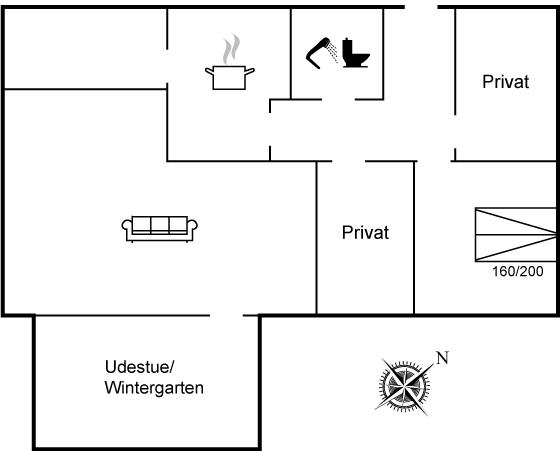 Huset er velegnet til ét par, men der er også mulighed for 2 ekstra opredninger til børn (kontakt lokalkontor for nærmere information).
