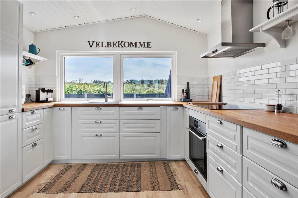 Det charmerende sommerhus har ligget her lige siden 1956, og så sent som i 2019 blev det renoveret på grundig vis. Begge årstal har betydning, for moderniseringen er sket med stor respekt for husets alder og historie, så det har fået lov til at bevare sin personlighed og sin skønne atmosfære. Som et lille charmetræk må I for eksempel stadig gå et-to trin op eller ned, når I bevæger jer fra det ene rum til det andet – og heldigvis er det opholdsrummet, der ligger højst i landskabet, så det er også herfra, at havudsigten er allerbedst. I det stilfulde opholdsrum er brændeovnen, varmepumpen og den flotte køkkenafdeling med til at gøre ferielivet både lækkert og komfortabelt. Der er også åben forbindelse til en hyggekrog med sofa og fladskærms-TV med Chromecast, og husets badeværelse og de tre soveværelser fremstår for øvrigt mindst lige så indbydende og velindrettede.