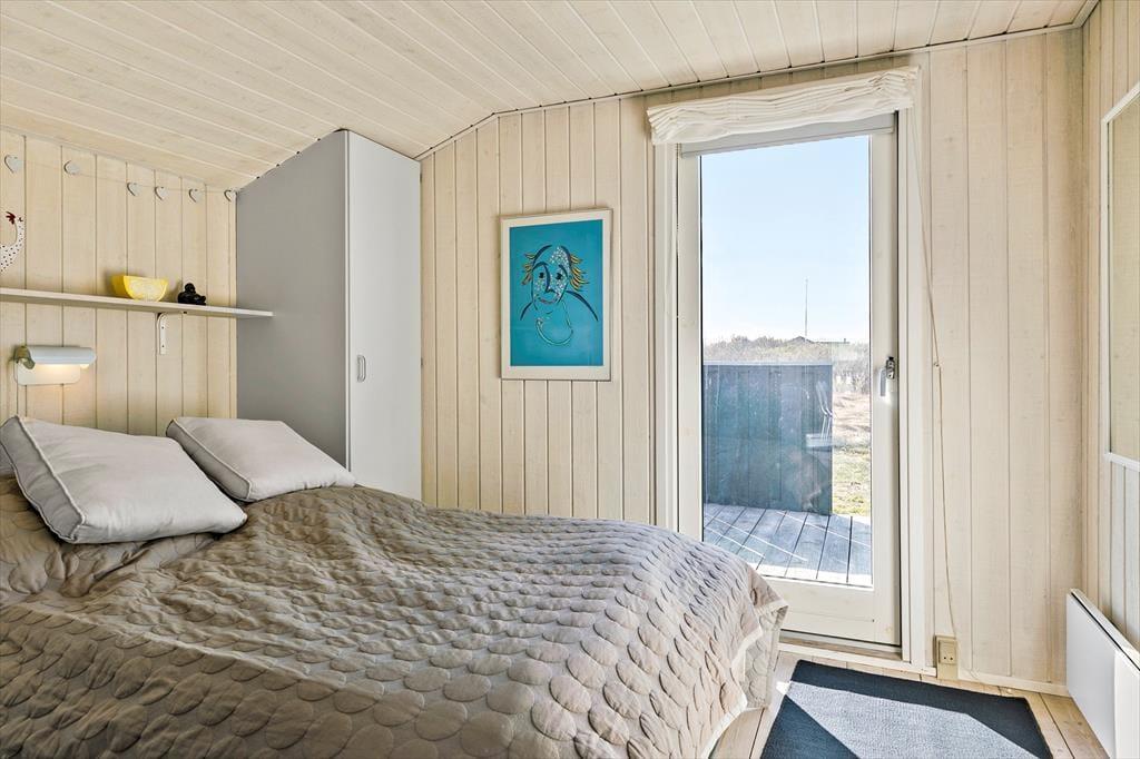 Huset er et klassisk sommerhus med sortmalet træfacade og hvide vinduesrammer. Det charmerende førstehåndsindtryk fortsætter indenfor, hvor man straks føler sig hjemme. Husets hjerte er den hyggelige opholdsstue og køkken, som er forbundet i et åbent rum med loft til kip. De lyse trævægge og lofter skaber en let og luftig nordisk stemning, og de store vinduer lader masser af naturligt lys strømme ind. Fra stuen har I en smuk udsigt over landskabet med Vesterhavet som baggrund. Køkkenet er moderne og godt udstyret, så I nemt kan tilberede feriens måltider. Huset har tre soverum, alle med dobbeltsenge, samt et badeværelse med brusebad og vaskefaciliteter.