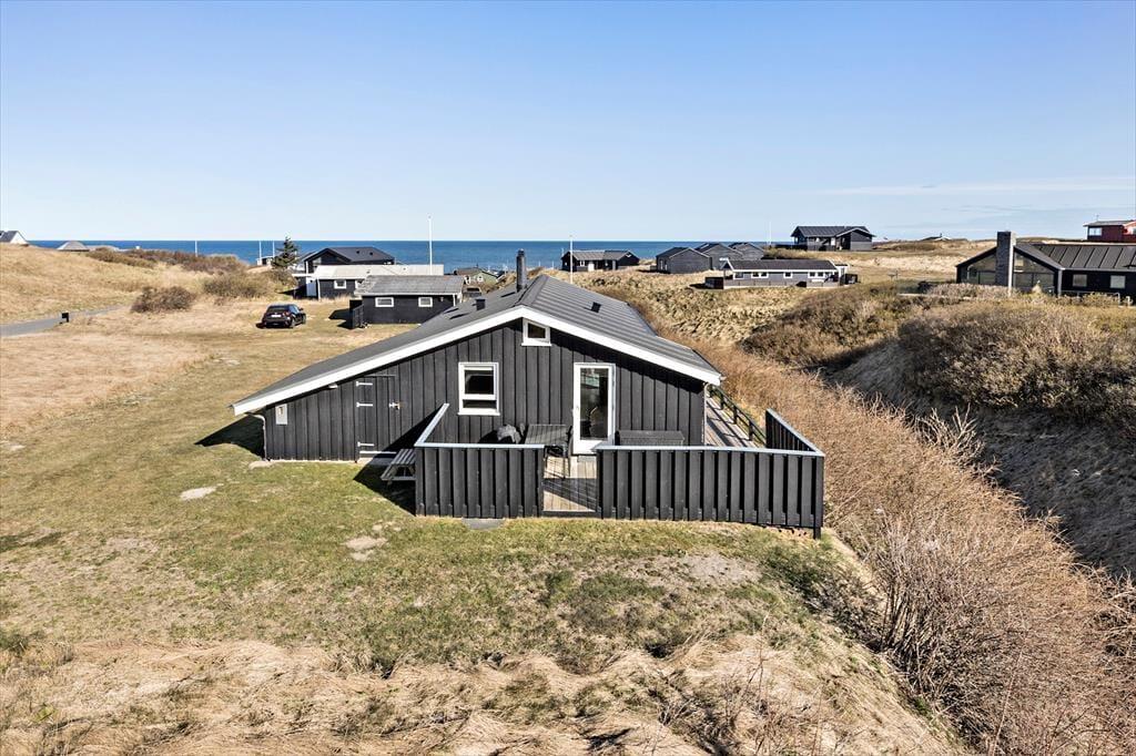 På en højtliggende naturgrund få skridt fra Vesterhavet ligger dette skønne sommerhus, hvor I kan nyde feriedagene med en betagende udsigt over vandet.