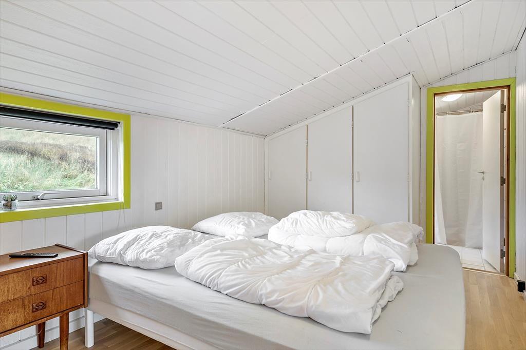 Atmosfæren er lys og venlig inden døre, og I kan straks føle jer hjemme i det 98 m2 store sommerhus. Indretningen passer godt til seks personer, for der er ikke bare tre soveværelser med dobbeltseng, men også to badeværelser, så I ikke behøver at stå i kø for at bade om morgenen. Det ene af badeværelserne er for øvrigt med badekar, hvilket er en skøn detalje, hvis der opstår et behov for lidt ekstra varme og wellness, når I vender hjem fra strandturen. I den rummelige opholdsafdeling har I god plads til at lave mad i køkkenet, samles ved spisebordet eller flade ud i stuens sofa, og med stort fladskærms-tv og brændeovn er der lagt op til nogle rigtig gode hyggeaftener.