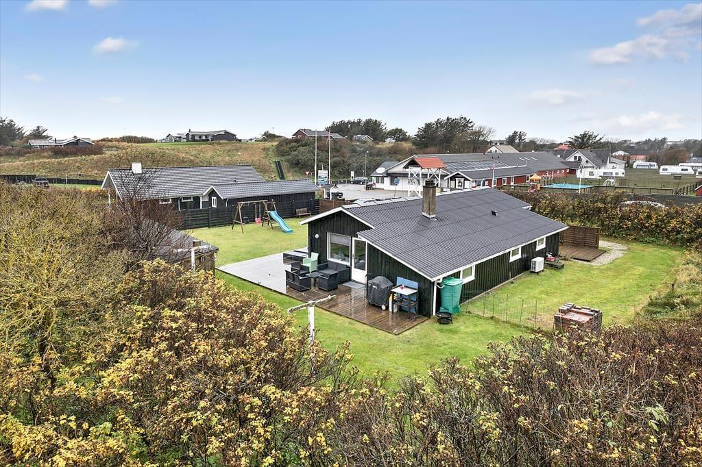 Sommerhusets 960 m2 store grund er godt skærmet af hybenbuske og plankeværk, og et hegn er med til at sørge for, at familiens hund ikke forvilder sig ud på vejen. Til børnene er der legestativ med rutsjebane og gynger, og græsplænen kan sagtens danne rammen om leg og boldspil for de yngste familiemedlemmer. Træterrassen er stor og solrig, og der er havemøbler, liggestole og en grill til rådighed, så I kan se frem til at nyde livet under åben himmel.