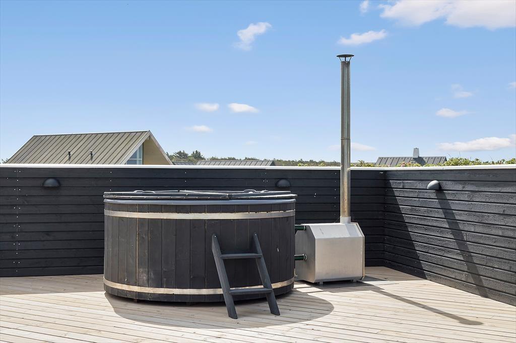 Udendørs venter der dig en stor terrasse, der giver dig mulighed for at nyde både solen og den imponerende havudsigt. Om dagen kan du læne dig tilbage i stolen og lade dig varme af solen, mens du kigger ud over det uendelige hav, og om aftenen kan du samle familien omkring et godt måltid og lade den spektakulære solnedgang blive en del af din ferieoplevelse. Terrasseområdet er det perfekte sted til både afslapning og samvær, og du vil hurtigt føle dig hjemme med naturen lige udenfor døren. Fra terrassen kan du også høre bølgernes brusen, som skaber en uforstyrret og rolig atmosfære – ideelt til lange feriedage, hvor du bare vil være til stede i øjeblikket.