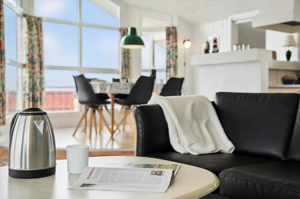 Når du træder ind i huset, bliver du mødt af en lys og indbydende atmosfære, hvor det er nemt at føle sig hjemme fra første øjeblik. Den åbne opholdsafdeling med stue og køkken i ét inviterer til nærvær og hyggestunder, og på kølige dage skruer du bare op for varmen og stemningen med brændeovnens knitren i baggrunden. Indretningen er præget af lyse farver og venlige materialer, der gør rummet rart at opholde sig i – uanset om I spiller spil ved spisebordet, snakker over madlavningen eller slapper af i sofaen. Badeværelserne er moderne og indbydende, og det ene byder på både sauna og spabad – et herligt sted at finde roen efter en lang travetur ved havet. Huset rummer komfortable sovepladser og er indrettet med fokus på både funktionalitet og feriestemning, så det er let at trække sig tilbage, når dagen går på hæld.