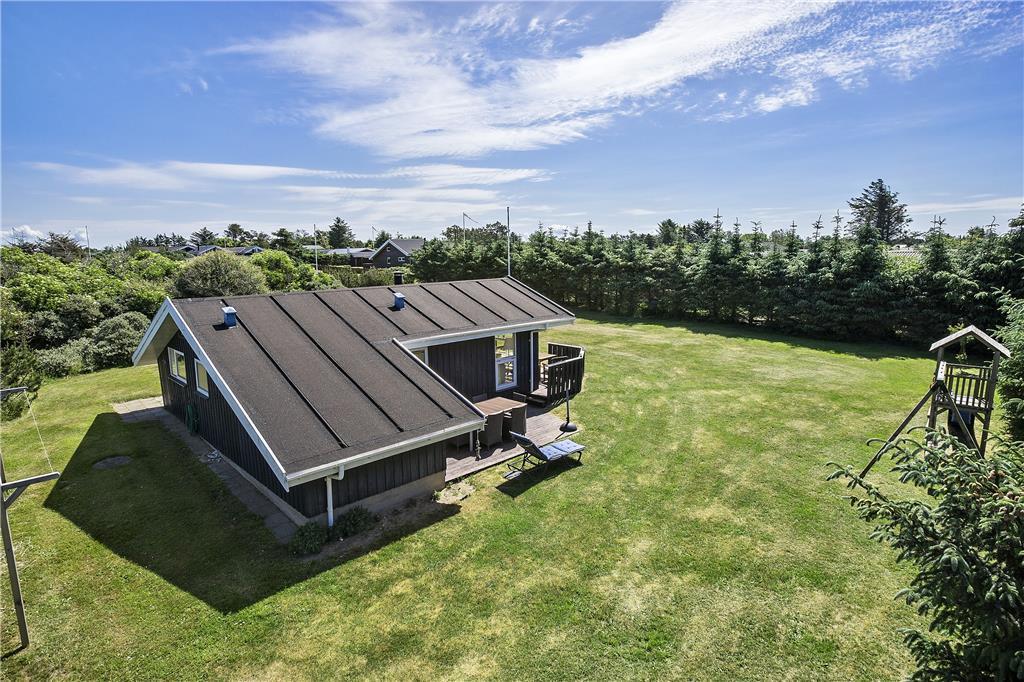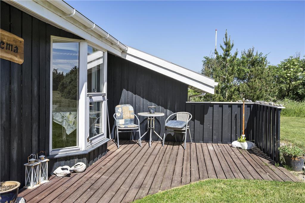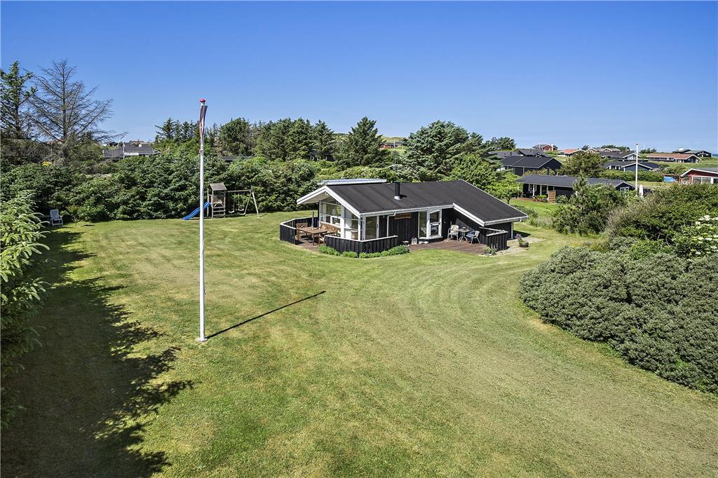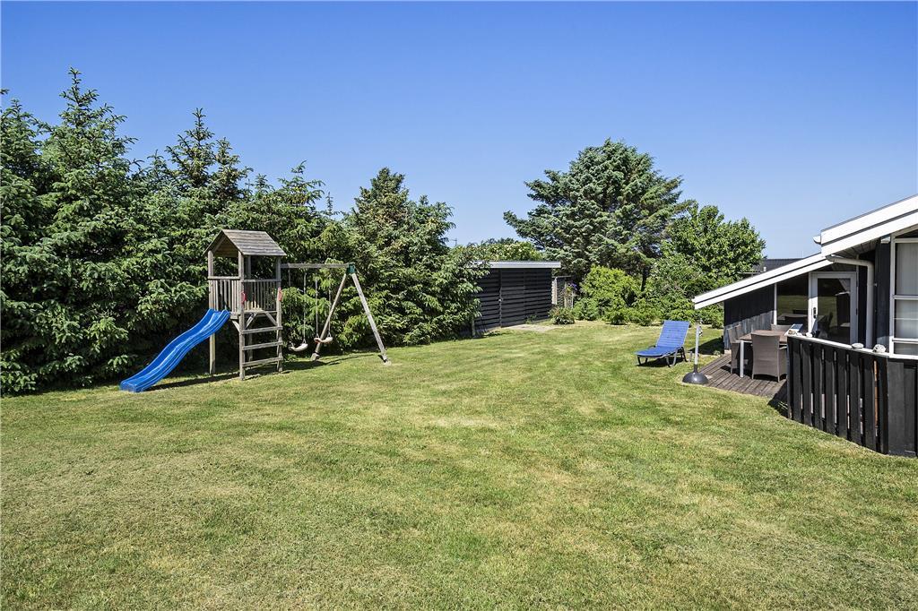 Sommerhuset ligger på en ugeneret havegrund, og til de mindste er der også klatretårn og et gyngestativ. Den store græsplæne indbyder til timevis af leg og sjov for hele familien. Både mod øst, syd og vest er der skønne terrasser, så det er muligt at sidde i solen hele dagen. Der hører naturligvis havemøbler og en grill til huset, så de lange sommeraftener kan nydes udenfor.