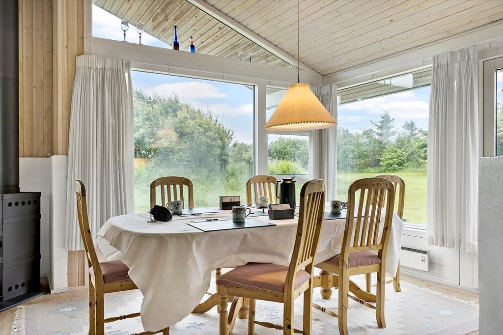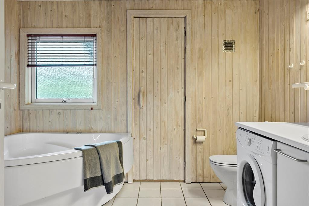 Fra entreen kommer man direkte ind i husets køkken-alrum, hvor hele familien kan være samlet og nyde hinandens selskab, uanset om man laver mad i køkkenet, spiller brætspil ved spisebordet eller sidder i sofakrogen og læser en god bog foran brændeovnen. Sommerhuset har tre gode, lyse værelser, hvoraf to er med dobbeltseng og det sidste er med køjeseng. Badeværelset er stort og har bruseniche samt spabad og en sauna, så her er fin mulighed for at slappe af og bruge lidt tid på selvforkælelse. Huset har desuden både vaske- og opvaskemaskine for at gøre ferien så bekvem som mulig.