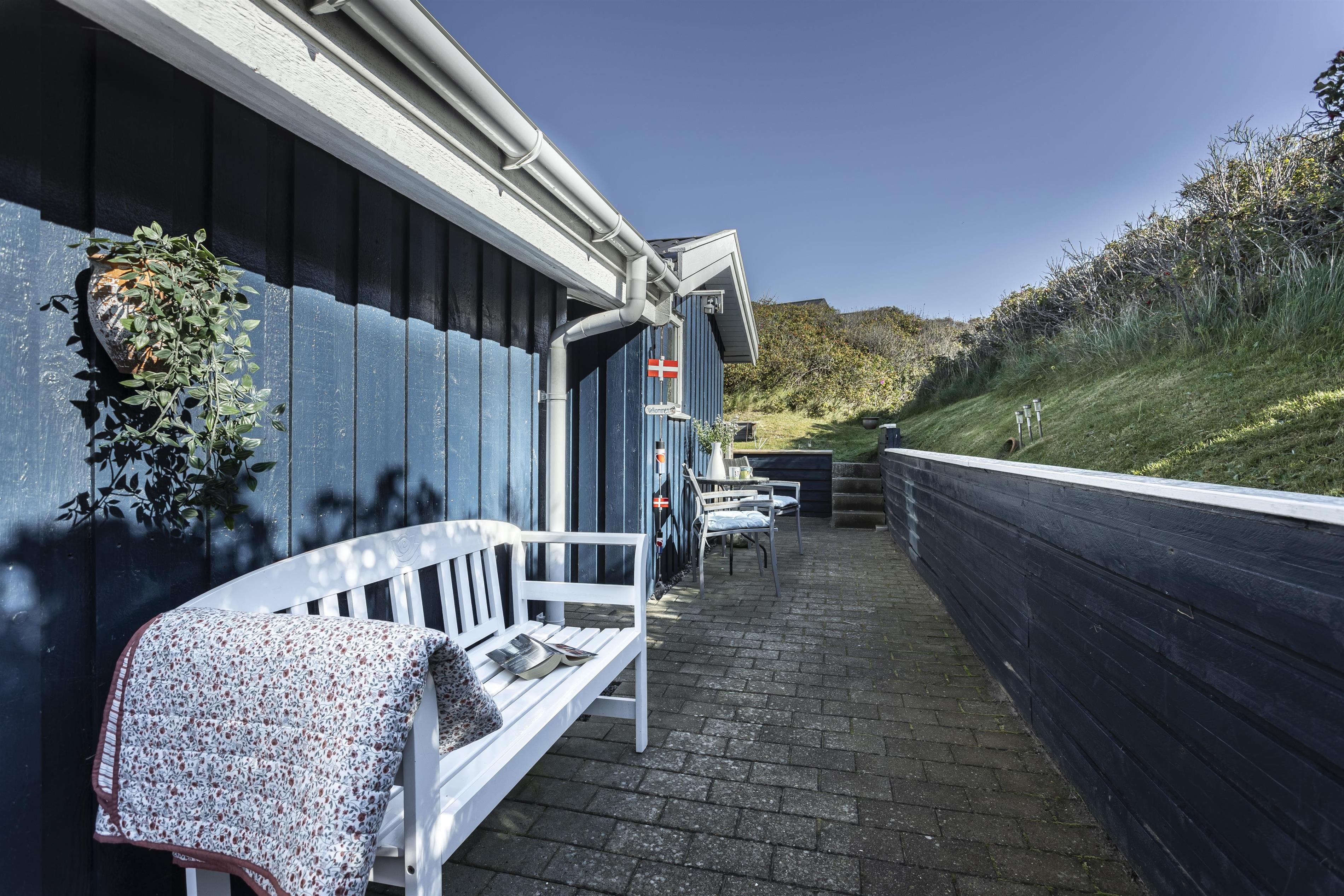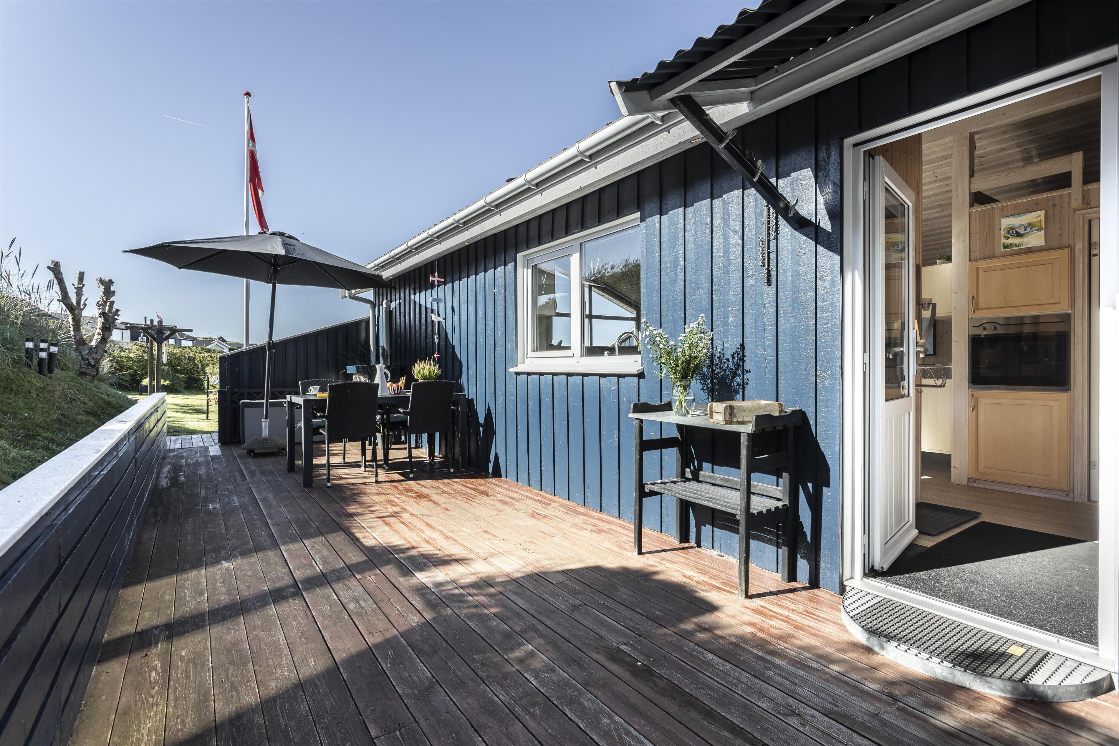 Terrassen byder på flere hyggelige kroge, hvor I kan slappe af med en kop kaffe eller en god bog ganske ugeneret. Bag garagen finder I et privat og hyggeligt spot med kig til havet, hvor I virkelig kan nyde roen og udsigten. Sommerhuset har en god græsplæne med plads til boldspil og leg for både børn og voksne.