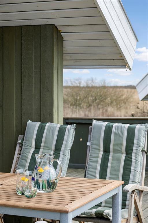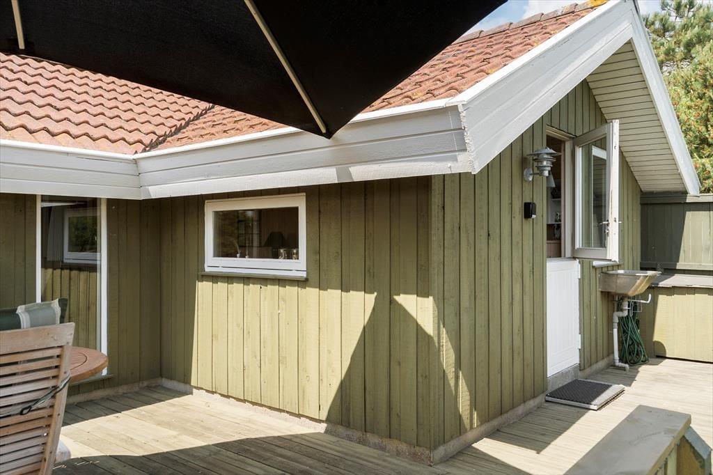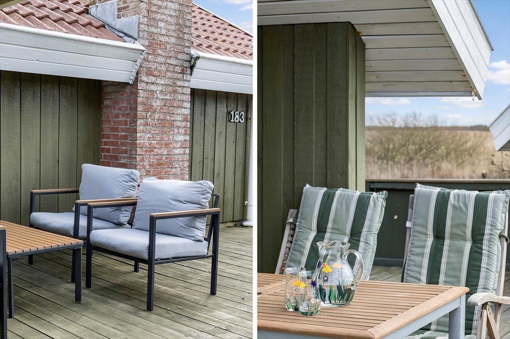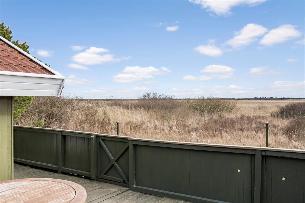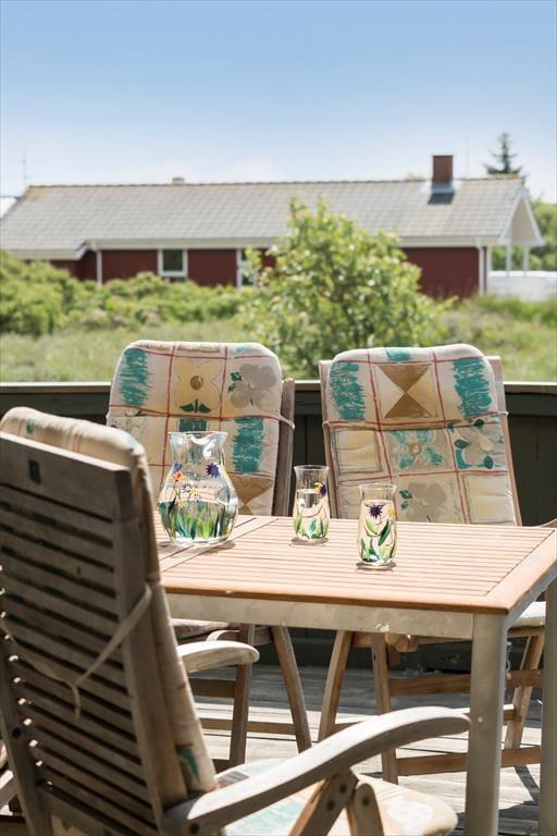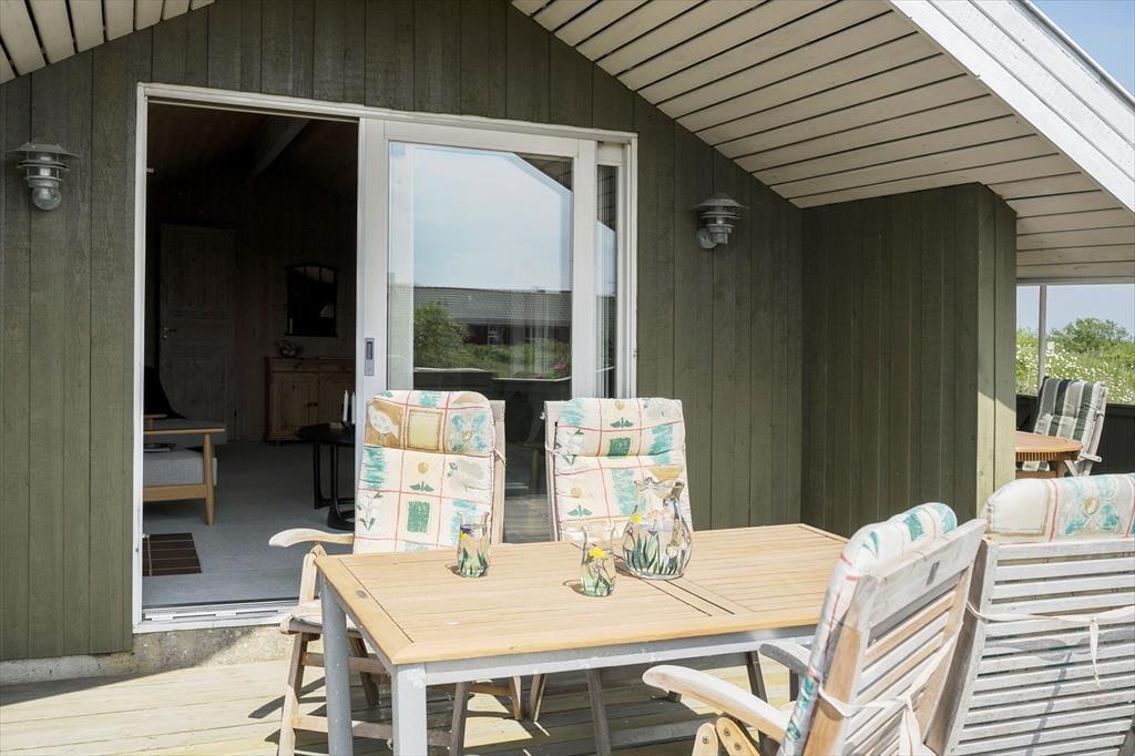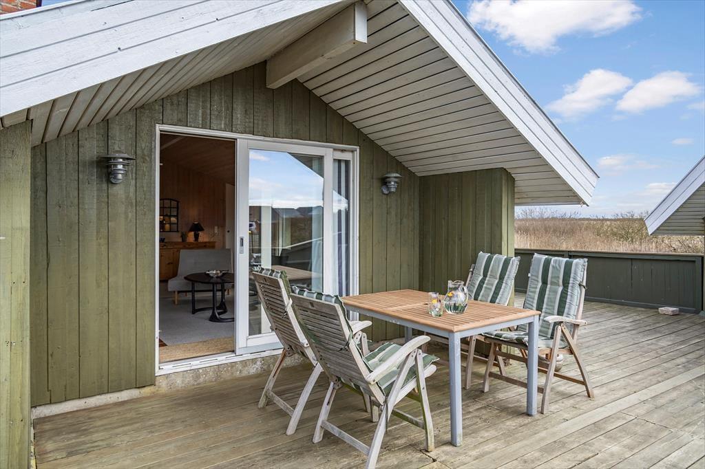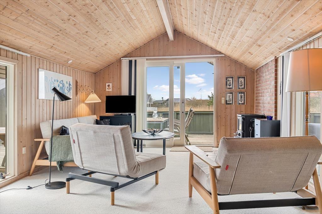 Du kan se frem til mange skønne feriestunder i dette hyggelige træhus på Lakolk 183. Atmosfæren er rar inden døre, og gennem vinduerne kan du se lige ud på den grønne naturgrund og det fredede landskab, der breder sig langt mod øst.