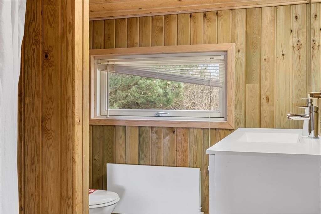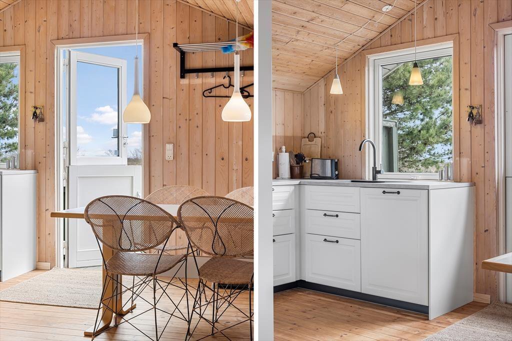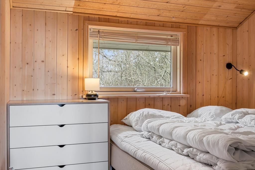 Det føles skønt at have så tæt kontakt til naturen, og selv når du hygger dig indenfor, har du mulighed for at følge med i fuglelivet eller lade tankerne flyve, mens du nyder udsigten over Lakolk Sø. Sommerhusets rum, der har loft til kip og træklædte vægge, passer godt ind i de naturskønne omgivelser, og både på de to soveværelser og i stuen er der sørget for, at du kan få det behageligt. Efter en god nats søvn kan du blive frisket op med et morgenskyl på badeværelset, og når du har brygget kaffe og fundet morgenmaden frem i det åbne køkken, kan du glæde dig til at småsludre med familien og løse krydsogtværs – måske endda i flere timer, hvis I ikke har andet på programmet.