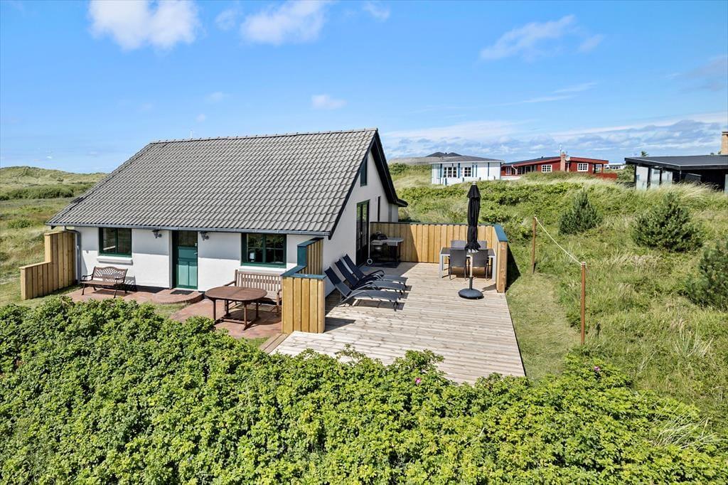 Ferien kommer til at udspille sig i fredelige og naturskønne rammer, når I holder den i dette hyggelige sommerhus. Her bor I for enden af en lille vej og med udsigt over det åbne klitlandskab – med andre ord så tæt på Lakolk Strand, I overhovedet kan komme.