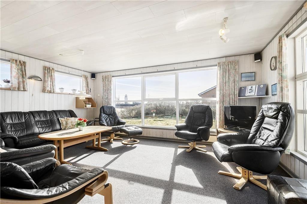 Selvom der er masser af aktivitetsmuligheder, har I også rig mulighed for at komme helt ned i roligt ferietempo. Det velholdte sommerhus er placeret i et marehalmsklædt landskab, og når I slapper af inden døre, har I udsigt til de flotte omgivelser og den høje himmel. Husets indbydende opholdsmiljø består af køkken, spisestue og opholdsstue i åben forbindelse, og her er både bløde siddemøbler, brændeovn og en god spiseplads, hvor I kan samles til lækre måltider og lange samtaler. Planløsningen består også af fire soveværelser og to badeværelser, hvoraf det ene er indrettet med det førnævnte spabad og en sauna. Aktivitetsrummet har I adgang til fra terrassen – så I kan hurtigt komme ud for at trække frisk luft, hvis I får varmen af bordtennismatchen.