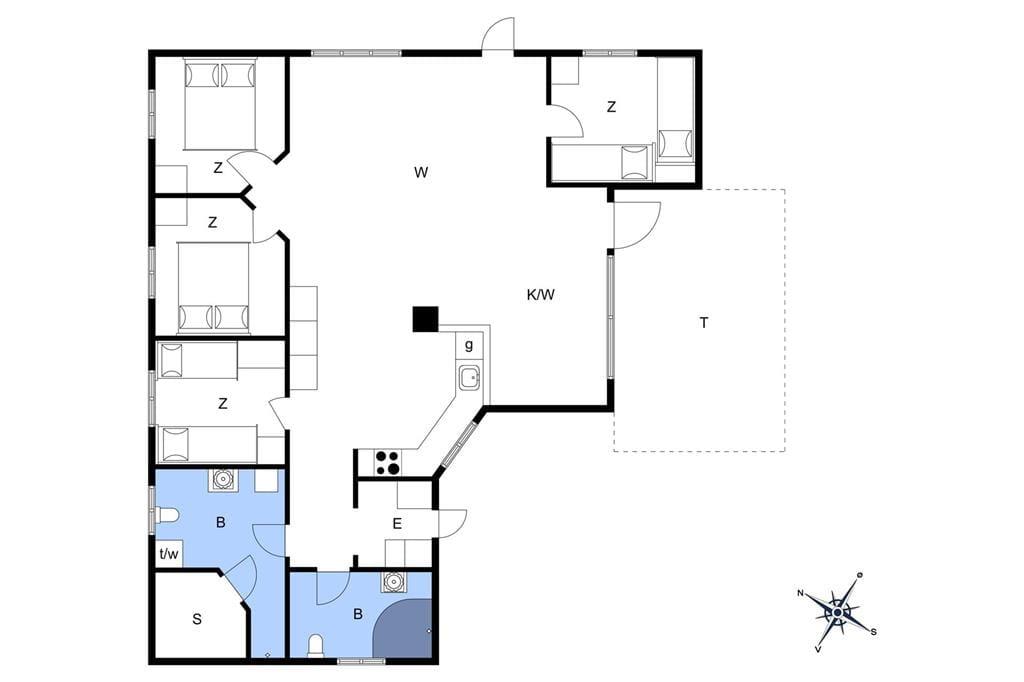 Komfort og kvalitet er kodeord for sommerhuset, som måler hele 113 m2. Den vellykkede planløsning byder blandt andet på fire gode soveværelser med plads til i alt otte personer. Når I er mange samlet, er det rart, at der er to badeværelser i sommerhuset – og her kan I endda nyde livet i saunaen og i det flotte hjørnespabad. Står der afslapning på ferieprogrammet, kan I alternativt mødes i opholdsrummet, for her er det skønt at flade ud i sofaafdelingen eller samles til et godt måltid mad, som I har tilberedt i den veludstyrede køkkenafdeling. En brændeovn står klar til at skrue op for hyggen og varmen – og varmepumpen sørger også for, at huset er helårsanvendeligt.